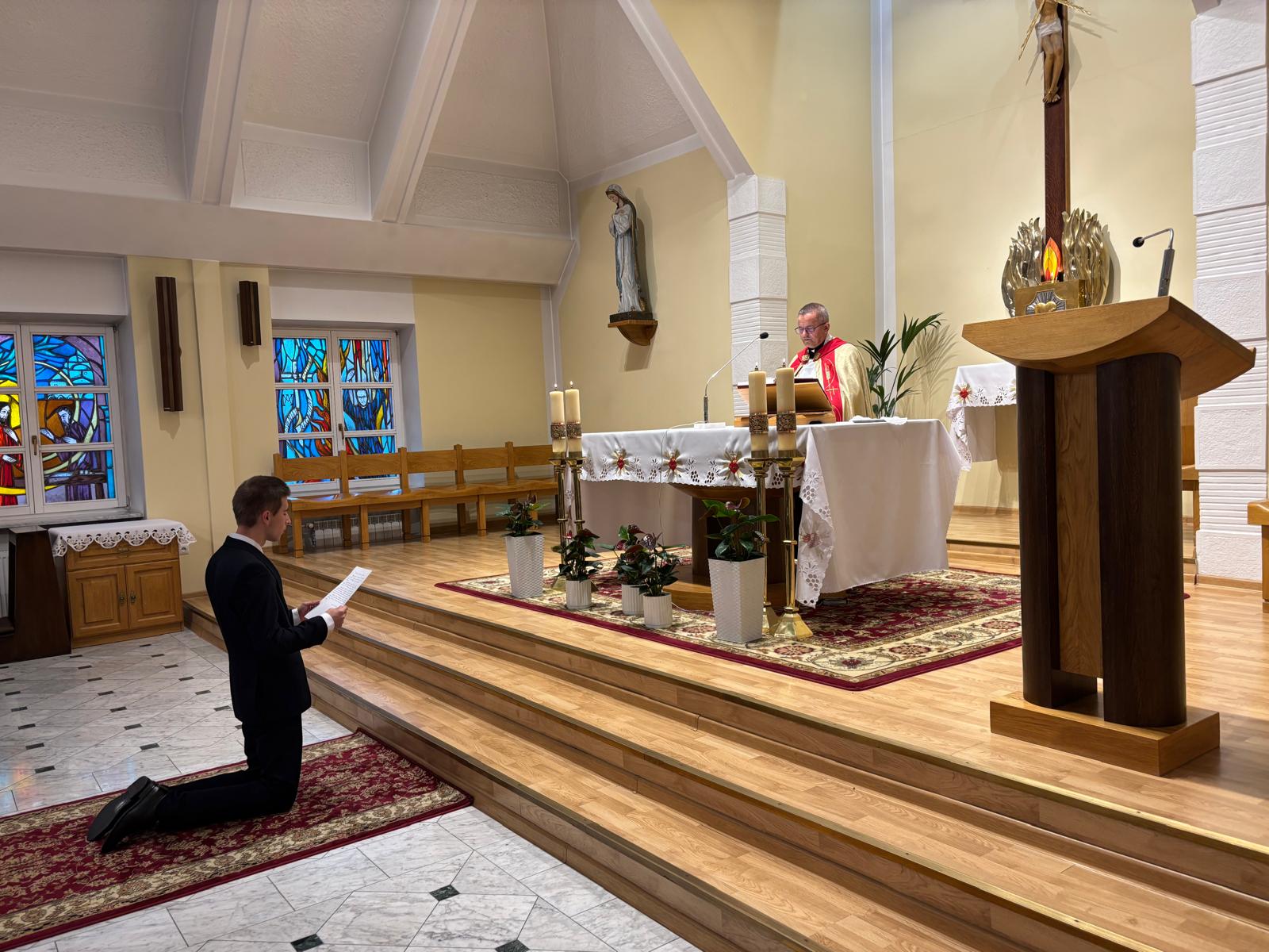 Liturgii słowa Bożego wraz z obrzędem przyjęcia do postulatu przewodniczył ks. wikariusz prowincjalny Witold Januś SCJ. Uroczystość odbyła się 24 października 2025 roku w kaplicy Wyższego Seminarium Misyjnego Księży Sercanów w Stadnikach.