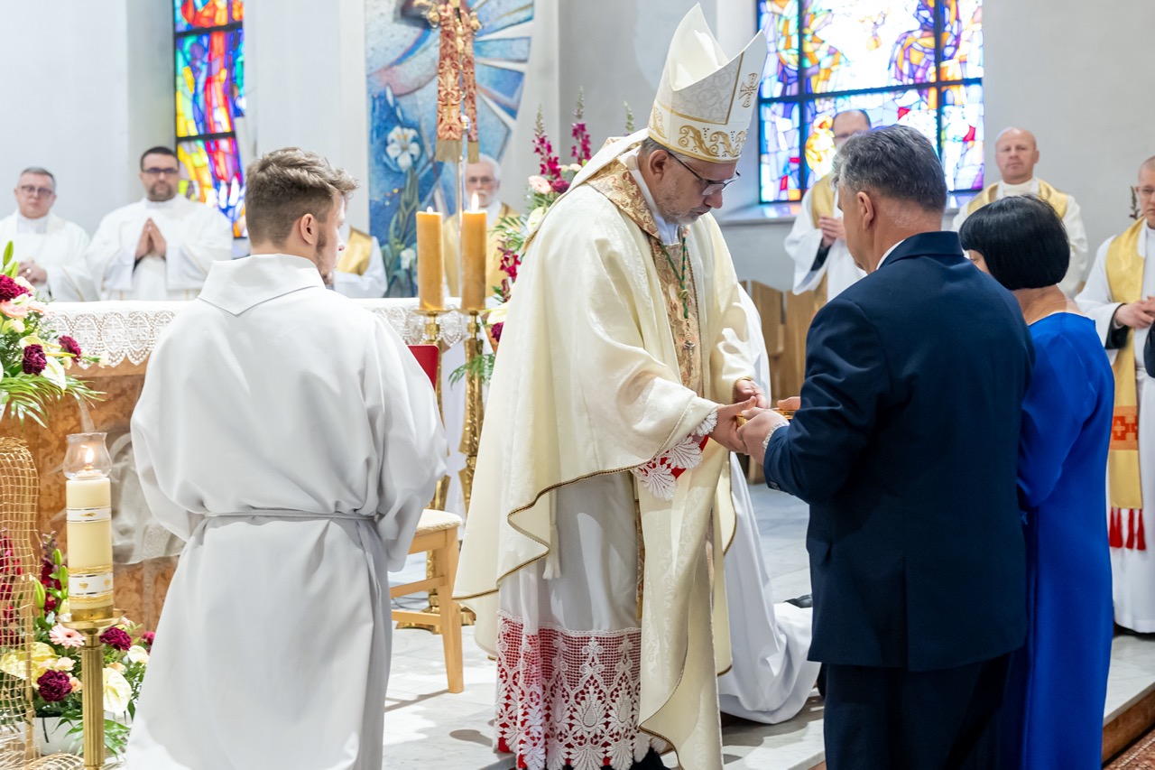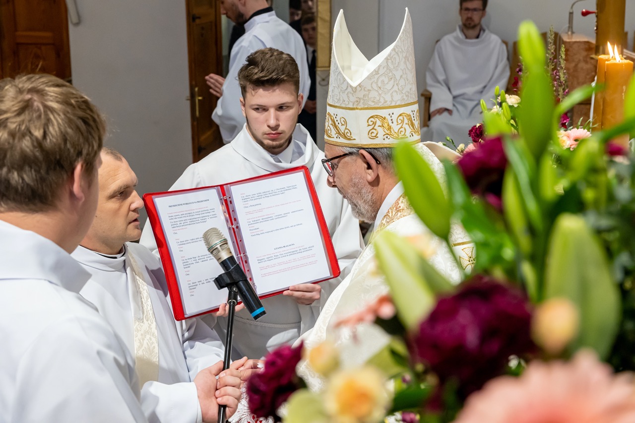 W imieniu nowowyświęconych kapłanów i diakonów głos zabrał ks. Michał Koźbiał SCJ, wyrażając wdzięczność bp. Adamowi za posługę szafarza święceń.