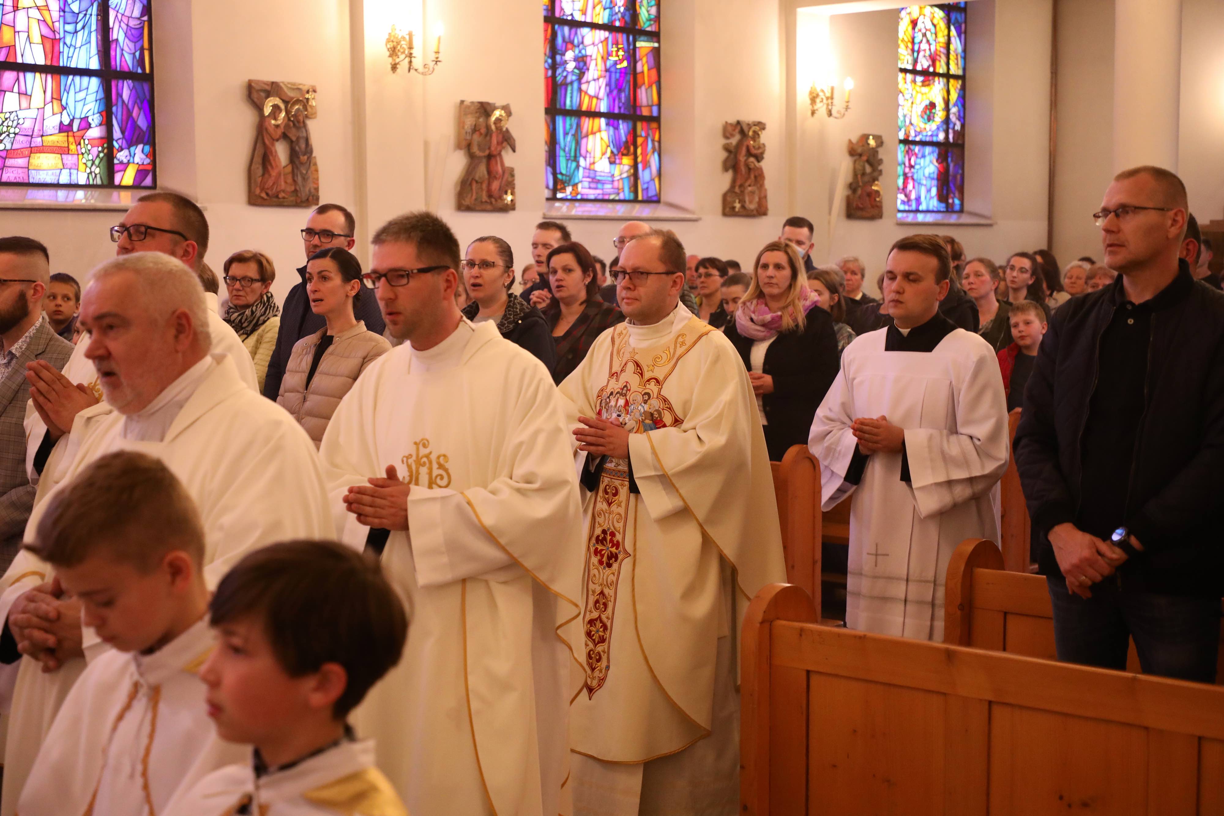 Natomiast wieczorem udaliśmy się do kościoła parafialnego, aby uczestniczyć w Mszy Świętej Wieczerzy Pańskiej, która rozpoczyna święte Triduum Paschalne. Świąteczny charakter tej celebracji wyrażał się przede wszystkim w otrzymanej wolności dzieci Bożych, naszym dziękczynieniu Jezusowi za sakramenty Eucharystii i Kapłaństwa oraz wzajemnej miłości, której wzór zostawił nam Chrystus w prostym geście umywania nóg.