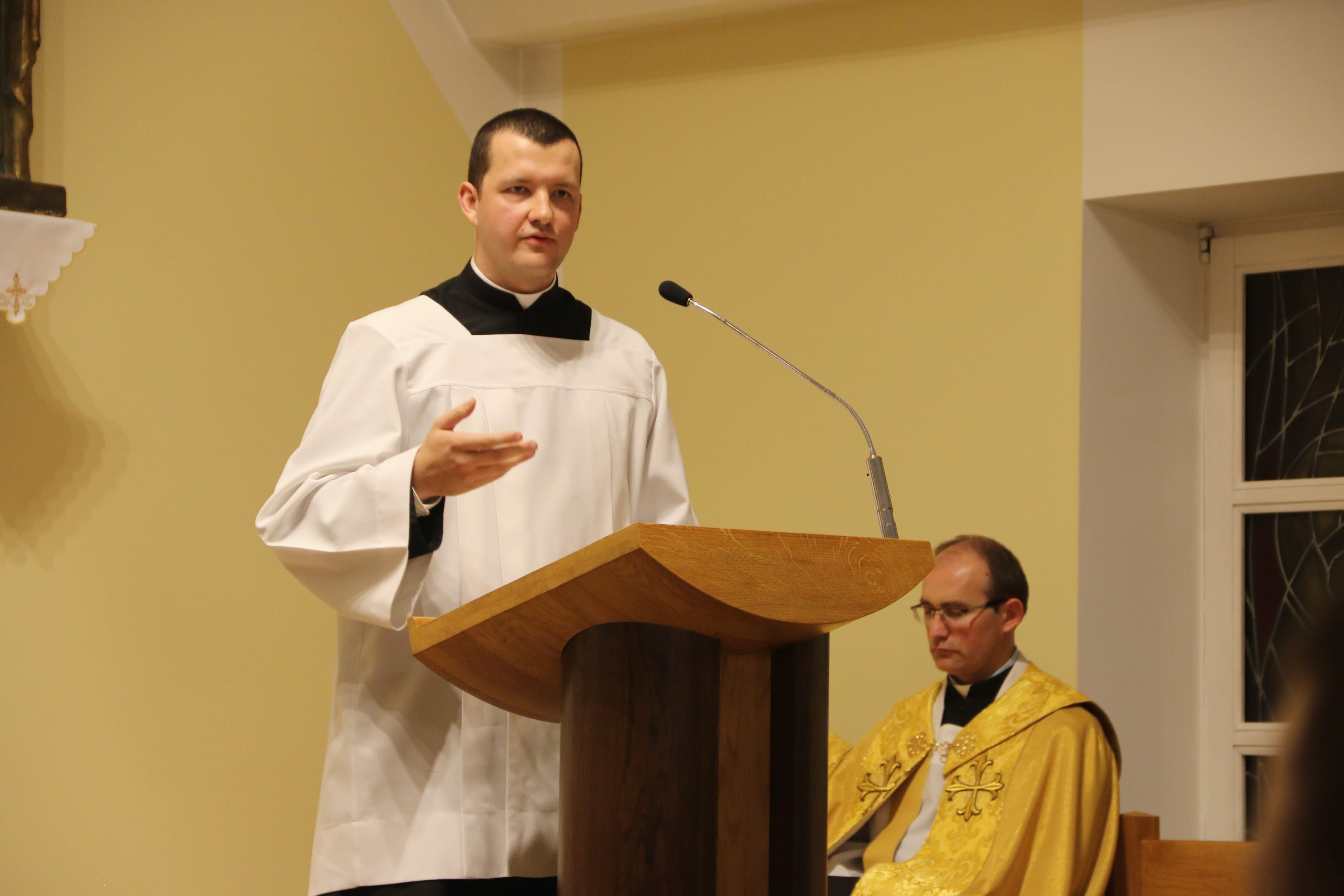W czasie liturgii słowa Bożego kl. Szymon przybliżył nam postać Tobiasza, którego świętość nie wiązała się z w wielkimi znakami mocy i chwały Bożej, jak miało to miejsce np. w historii Mojżesza, Gedeona i innych wielkich postaci Starego Testamentu, lecz raczej z szarą codziennością, bez spektakularnych cudów i objawień.