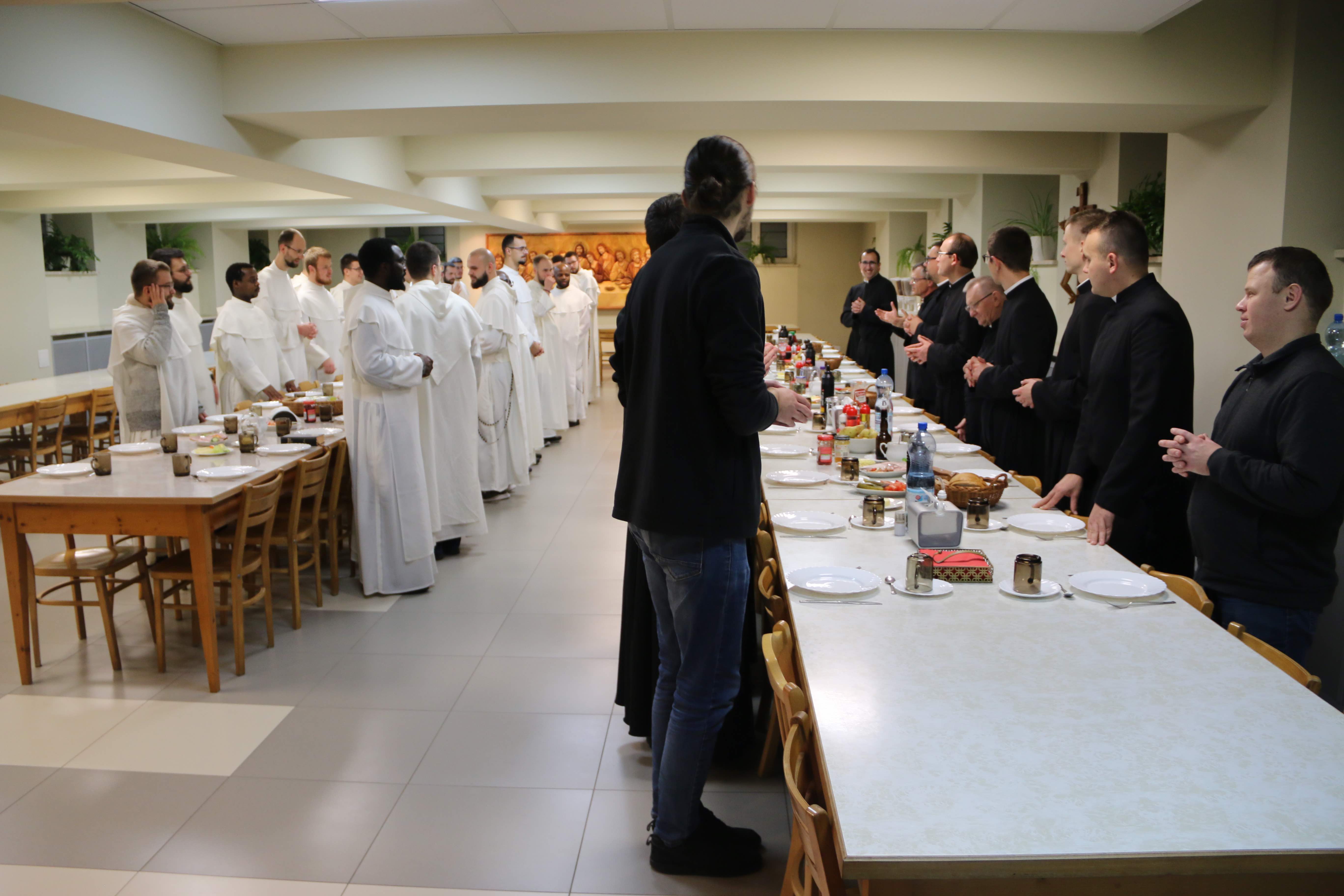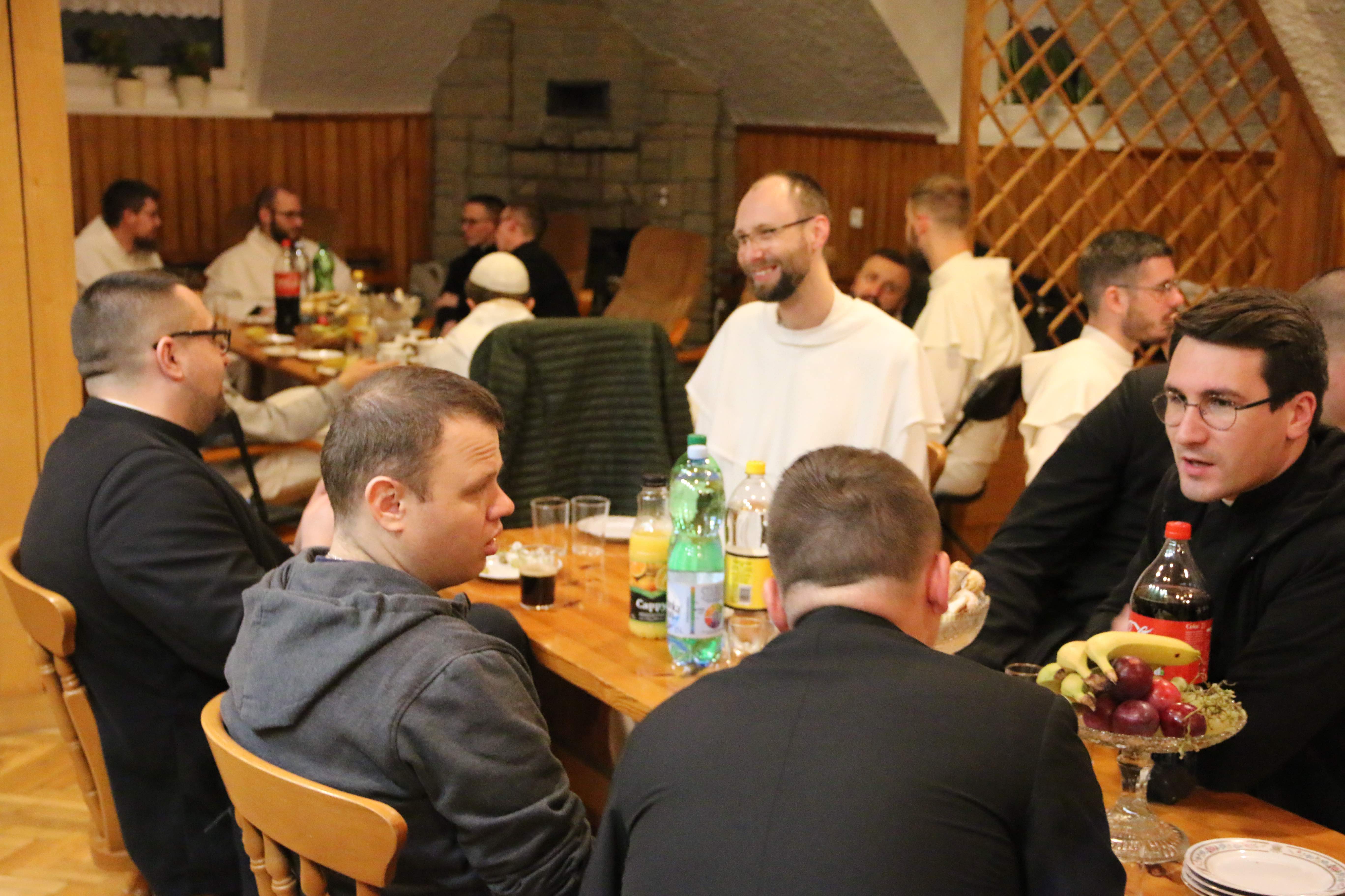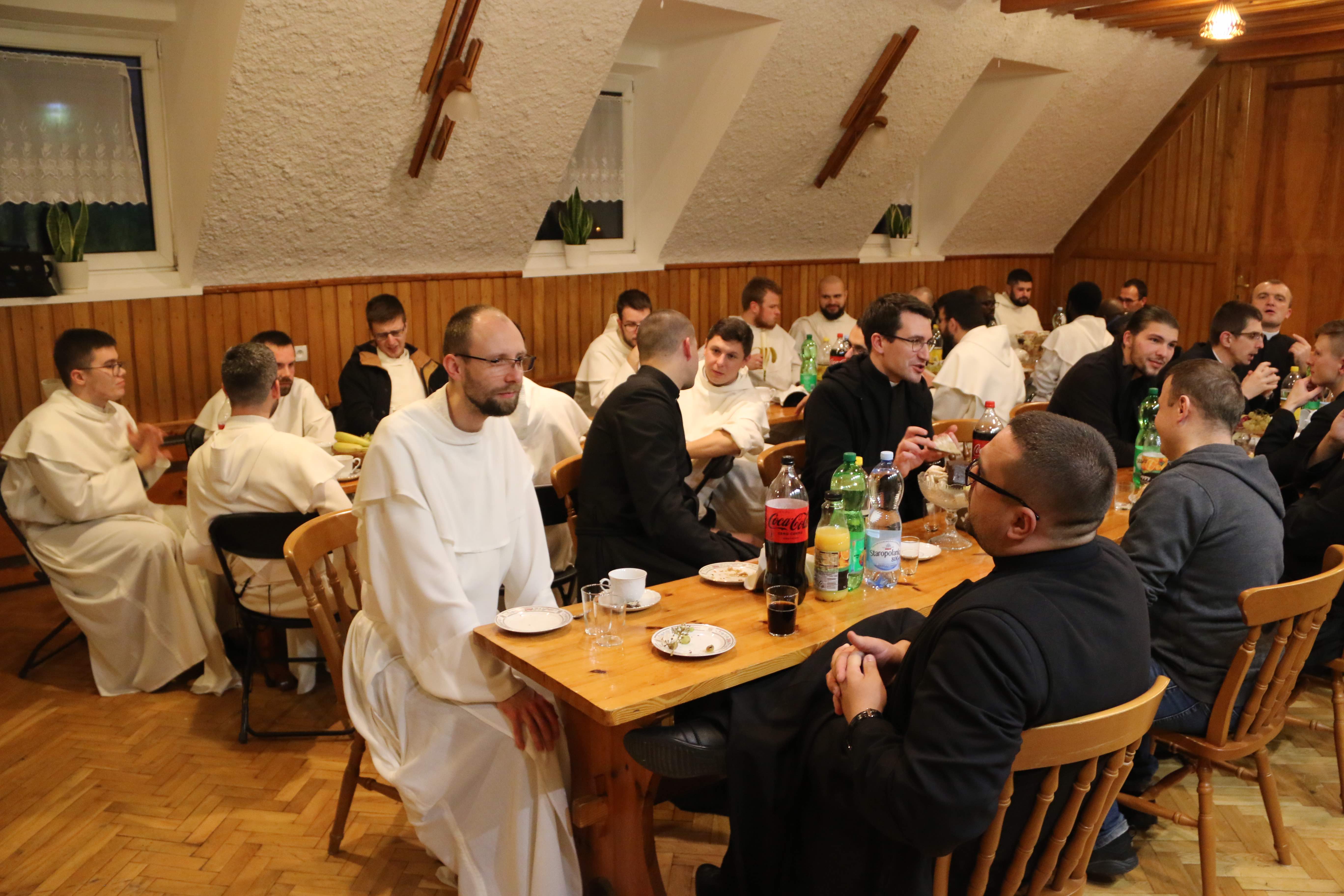 Po sportowym wysiłku spotkaliśmy się przy wspólnym stole na poczęstunku. Następnie udaliśmy się na zwiedzanie seminarium oraz Adorację Najświętszego Sakramentu. Spotkanie zakończyło się wspólną kolacją, po której dziękowaliśmy sobie za spędzony braterski czas.