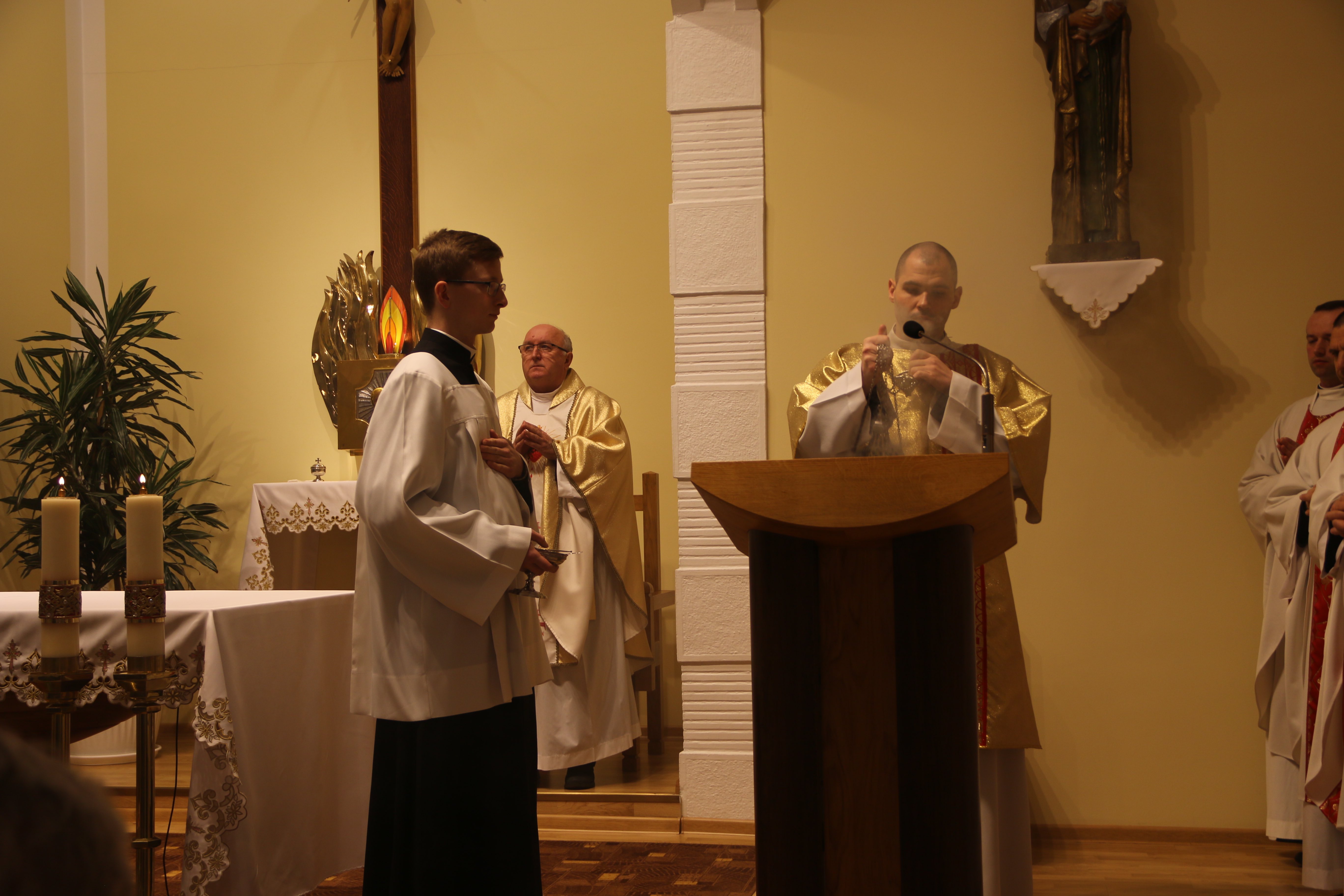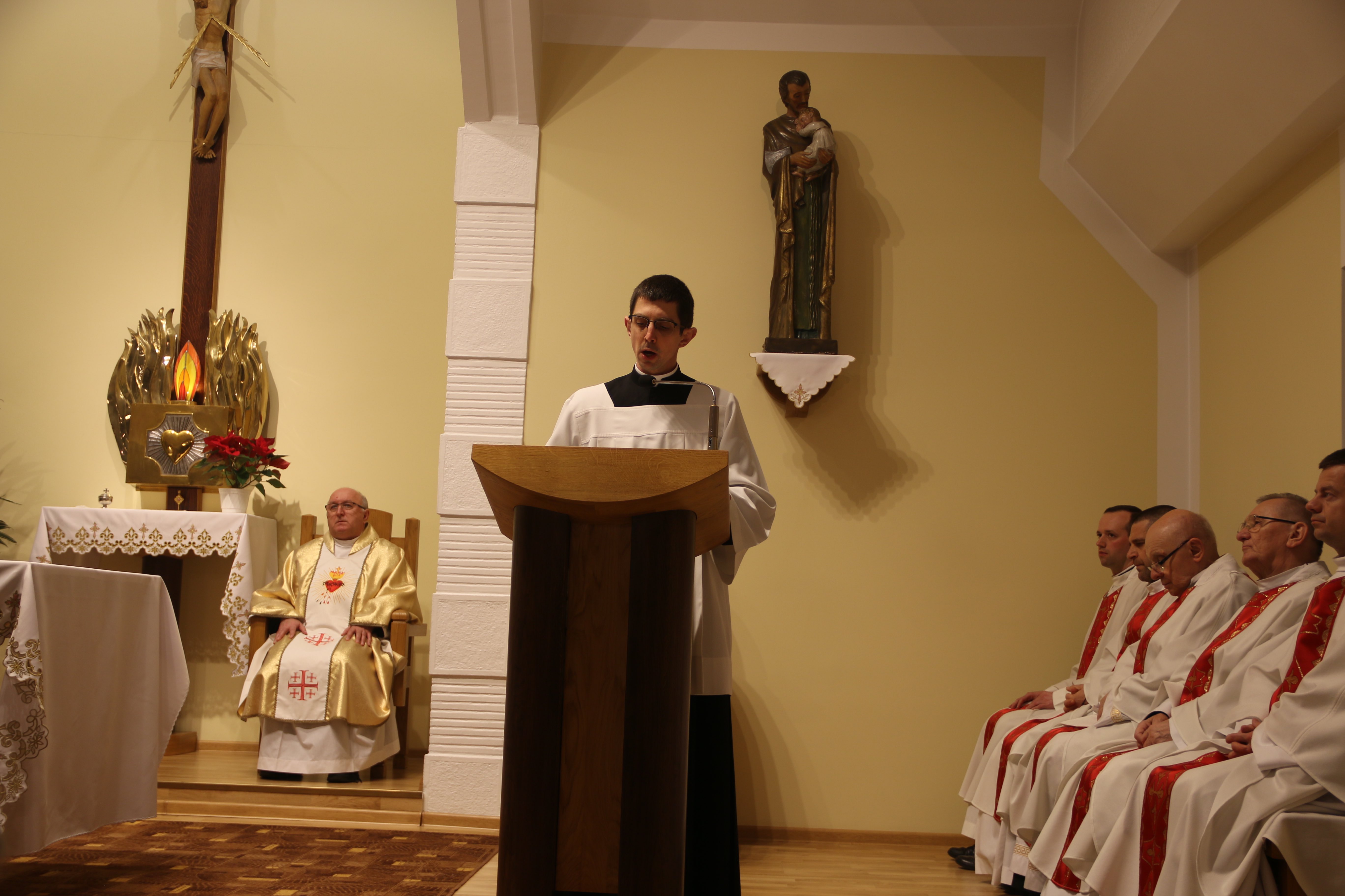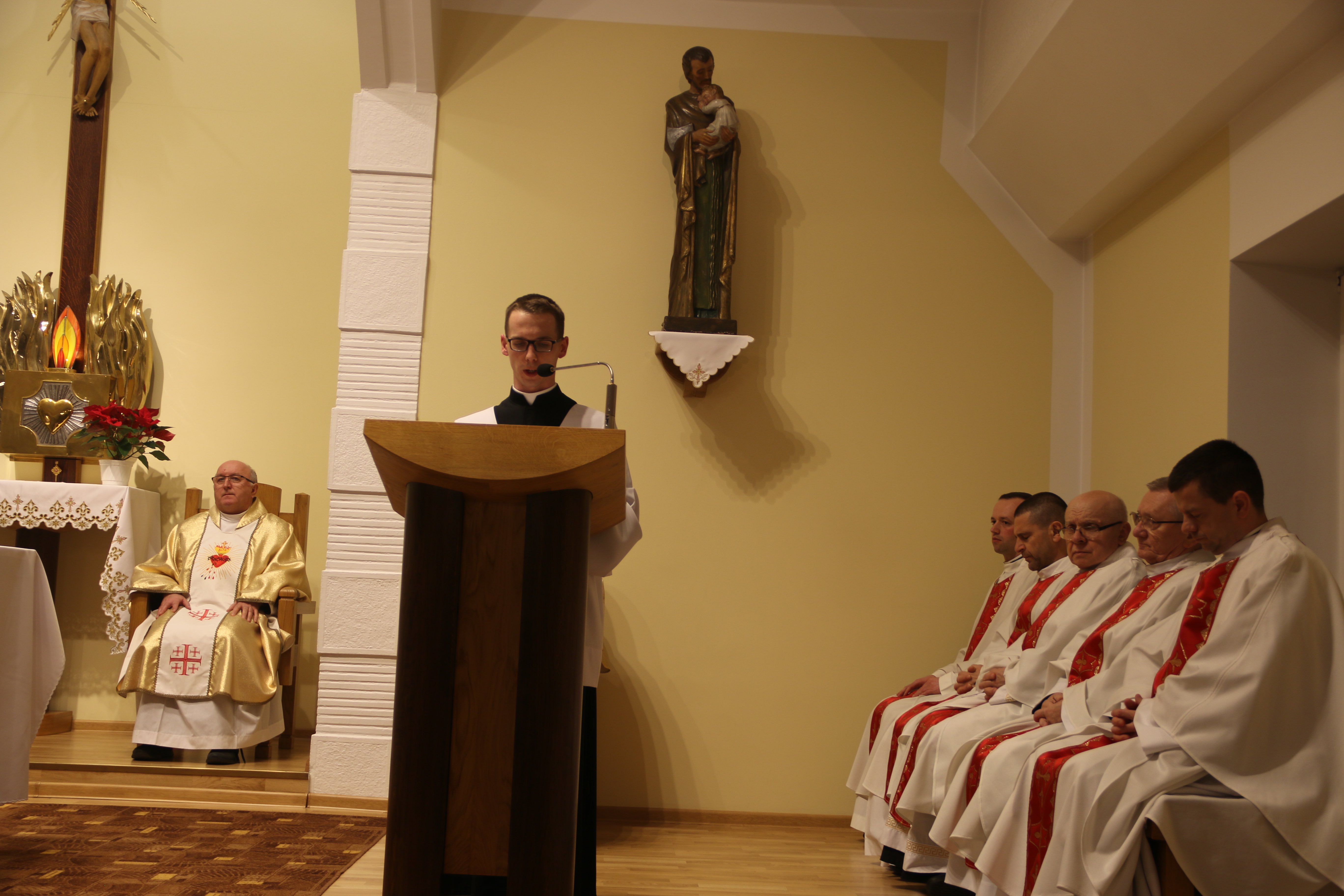 W modlitwie tego dnia towarzyszył nam ks. Krzysztof Zimończyk SCJ – dyrektor krajowy Arcybractwa Straży Honorowej Najświętszego Serca Jezusowego, który w swych rozważaniach wskazał na charakterystyczne dyspozycje Serca Jezusowego w przyjęciu woli Ojca. Ks. Krzysztof wymienił tu przede wszystkim czystość Bożego Serca, nieustanne wsłuchiwanie się w wolę Ojca oraz modlitwę składającą się z trzech momentów: słuchania, wołania (krzyku) i zgody. W tym kontekście kaznodzieja zachęcał nas do tego, abyśmy wpatrując się w Boże Serce, codziennie pozwalali Bogu kształtować nasze serca na podobieństwo Serca Jego umiłowanego Syna.