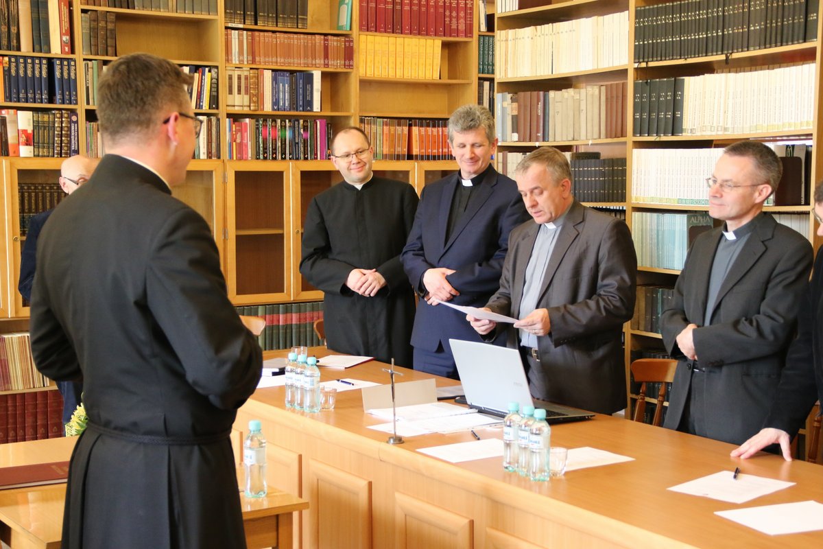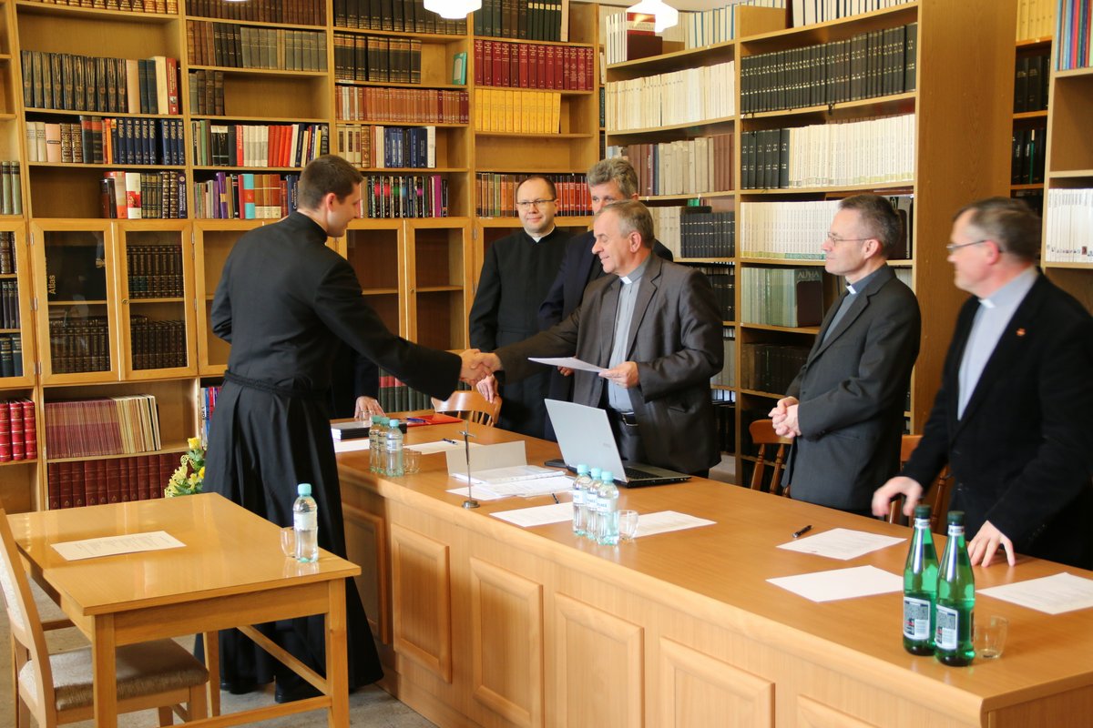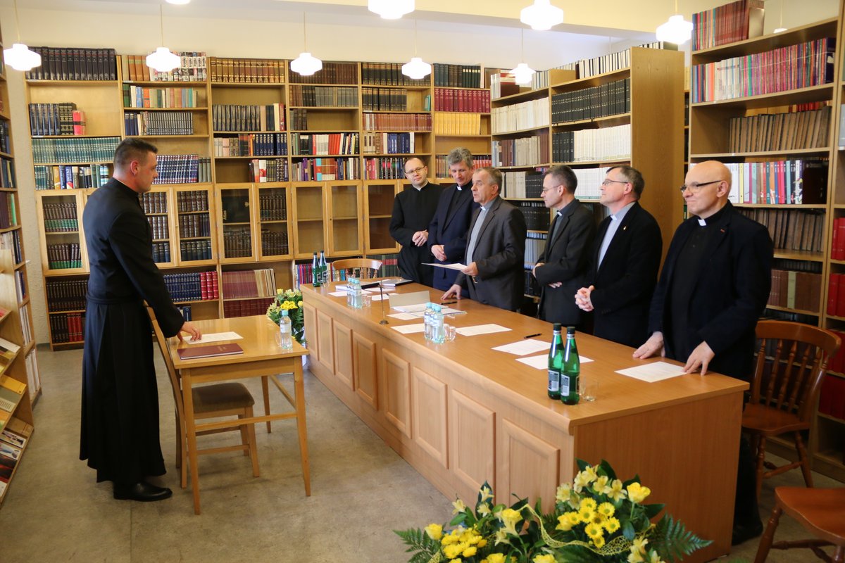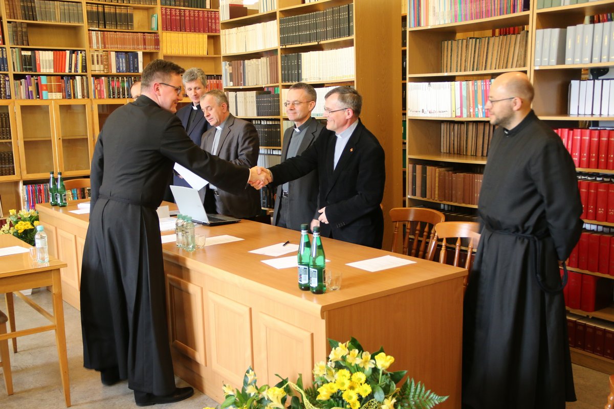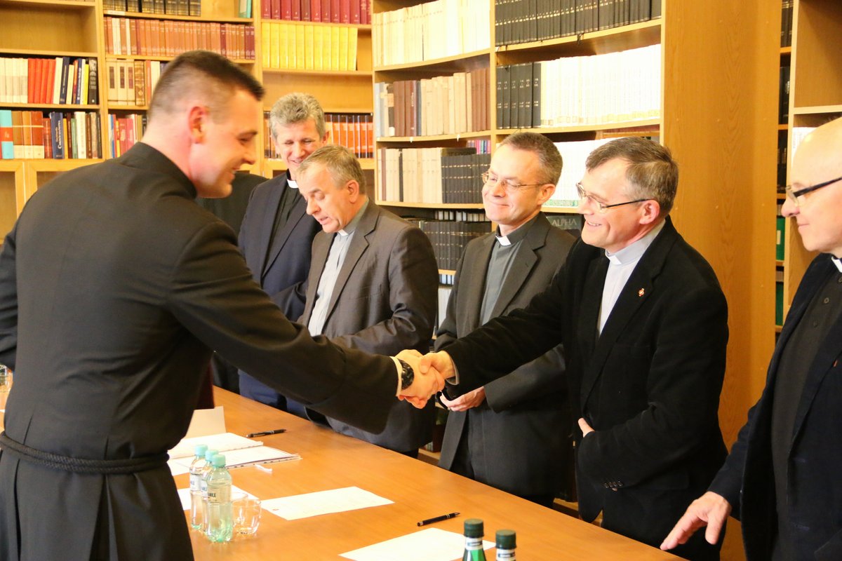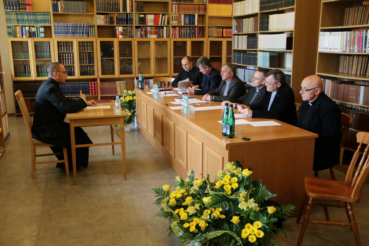 Po kilkuletniej przerwie w naszym seminarium odbyła się obrona prac magisterskich oraz egzamin ex universa theologia, do którego przystąpiło czterech alumnów VI roku. W poniedziałek 23 kwietnia 2018 r. o godz. 14.00 w lektorium (czytelni) zgromadziła się komisja w składzie: ks. prof. dr hab. Stanisław Hałas SCJ (Teologia biblijna); ks. dr hab prof. UPJPII Tadeusz Kałużny SCJ (Teologia dogmatyczna); ks. dr Krzysztof Paluch SCJ (Teologia moralna); ks. dr Dariusz Salamon SCJ (Teologia fundamentalna). Na czele komisji stanął ks. dr hab. prof. UPJPII Roman Bogacz, prodziekan Wydziału Teologicznego Uniwersytetu Papieskiego Jana Pawła II w Krakowie, do którego jest afiliowane nasze sercańskie seminarium.