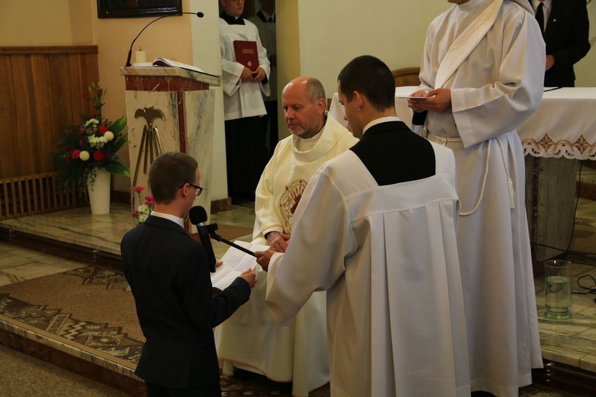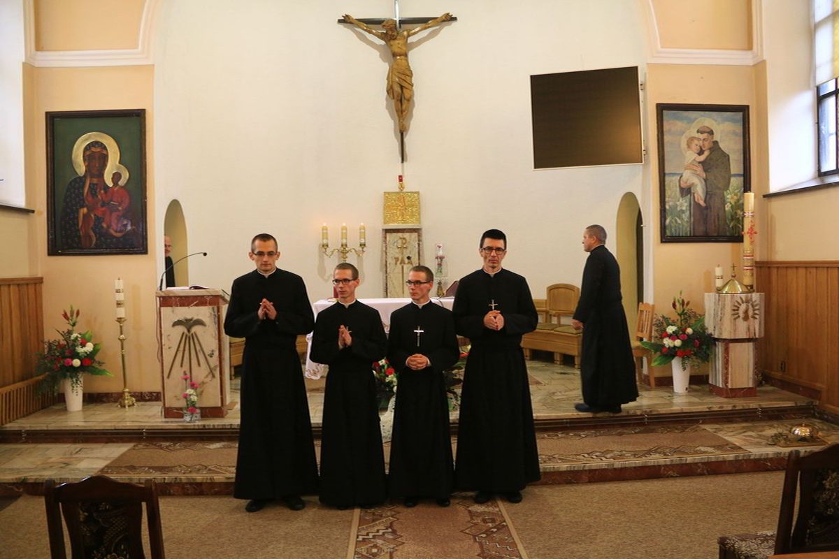 Oczy całej prowincji zwróciły się dzisiaj w stronę Stopnicy, gdzie czterech nowicjuszy złożyło swoją pierwszą profesję zakonną. Adam Maj, Karol Szlezinger, Paweł Szlezinger i Szymon Włodarczyk w sobotę 23 września 2017 r. wyrazili wolę naśladowania Chrystusa ubogiego, czystego i posłusznego składając zakonne śluby. Otoczeni modlitwą licznie przybyłych współbraci oraz najbliższej rodziny uczynili ważny krok na drodze formacji zakonnej.