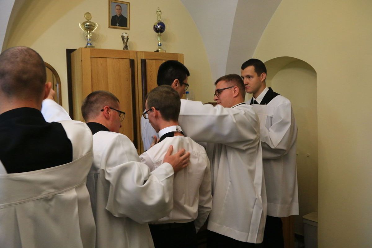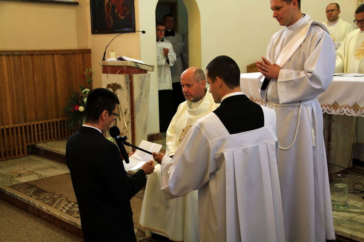 Panie, Ty natchnąłeś tych naszych współbraci do powzięcia postanowienia naśladowania Chrystusa w stanie zakonnym. Spraw, aby osiągnęli cel rozpoczętej drogi i złożyli Ci całkowitą ofiarę ze swojego życia.
