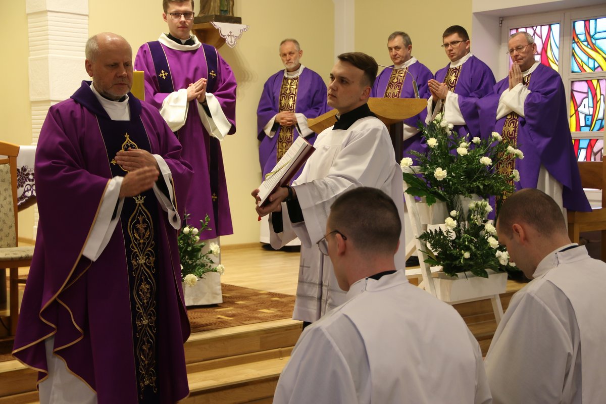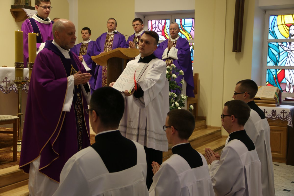 Podczas uroczystej Mszy świętej odprawionej o godzinie 12.00 w seminaryjnej kaplicy, której przewodniczył przełożony prowincjalny ks. Wiesław Święch SCJ, wprowadzono w posługi lektora i akolity sześciu alumnów. W posługę lektoratu zostali wprowadzeni klerycy trzeciego roku: Adam Maj, Karol Szlezinger, Paweł Szlezinger, Szymon Włodarczyk. W posługę akolitatu zostali wprowadzeni kl. Władysław Czujko z Białorusi i kl. Wojciech Olszewski z Polski.