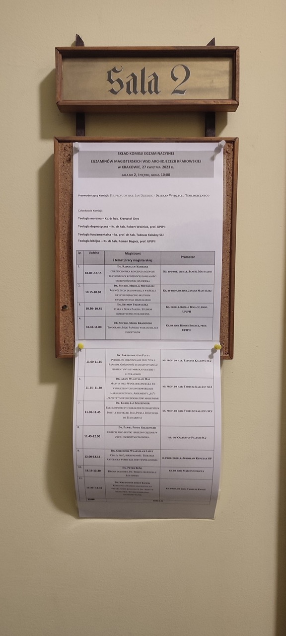 27 kwietnia 2023 roku, w budynku Wyższego Seminarium Duchownego Archidiecezji Krakowskiej, miał miejsce egzamin magisterski z teologii, do którego oprócz alumnów diecezjalnych, przystąpiło trzech diakonów naszego seminarium: Adam Maj SCJ, Karol Szlezinger SCJ oraz Paweł Szlezinger SCJ.