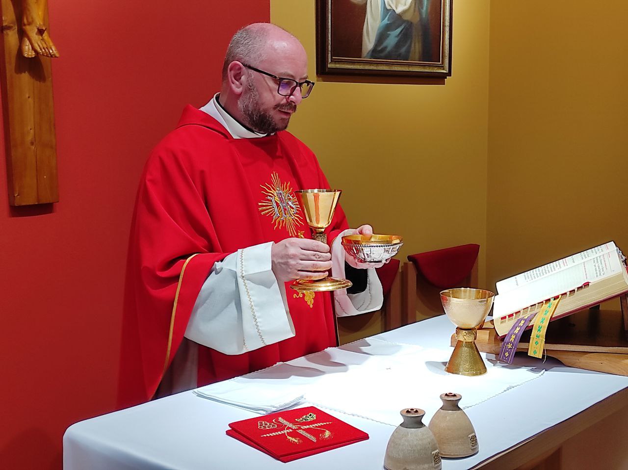 Listopadowy dzień odnowienia zakończył się wspólnotową celebracją Mszy świętej, która była sprawowana we wspomnienie świętych pierwszych męczenników Polski. Prowadzący, nawiązując do odczytanej ewangelii, podkreślił słowa Jezusa: „Królestwo Boże jest pośród was”, zachęcając w ten sposób, aby umieć docenić to spotkanie, ten czas modlitwy liturgicznej, spowiedzi, adoracji i wreszcie Eucharystii, jako wielkiego dziękczynienia. Ks. Mariusz Wrzesiński SCJ zakończył swoje kazanie przykładem męczenników, zachęcając by w trudnych chwilach życia spojrzeć na krzyż Chrystusa i mocno się do niego przytulić, jak to uczynili dzisiejsi święci: Benedykt, Jan, Mateusz, Izaak i Krystyn.