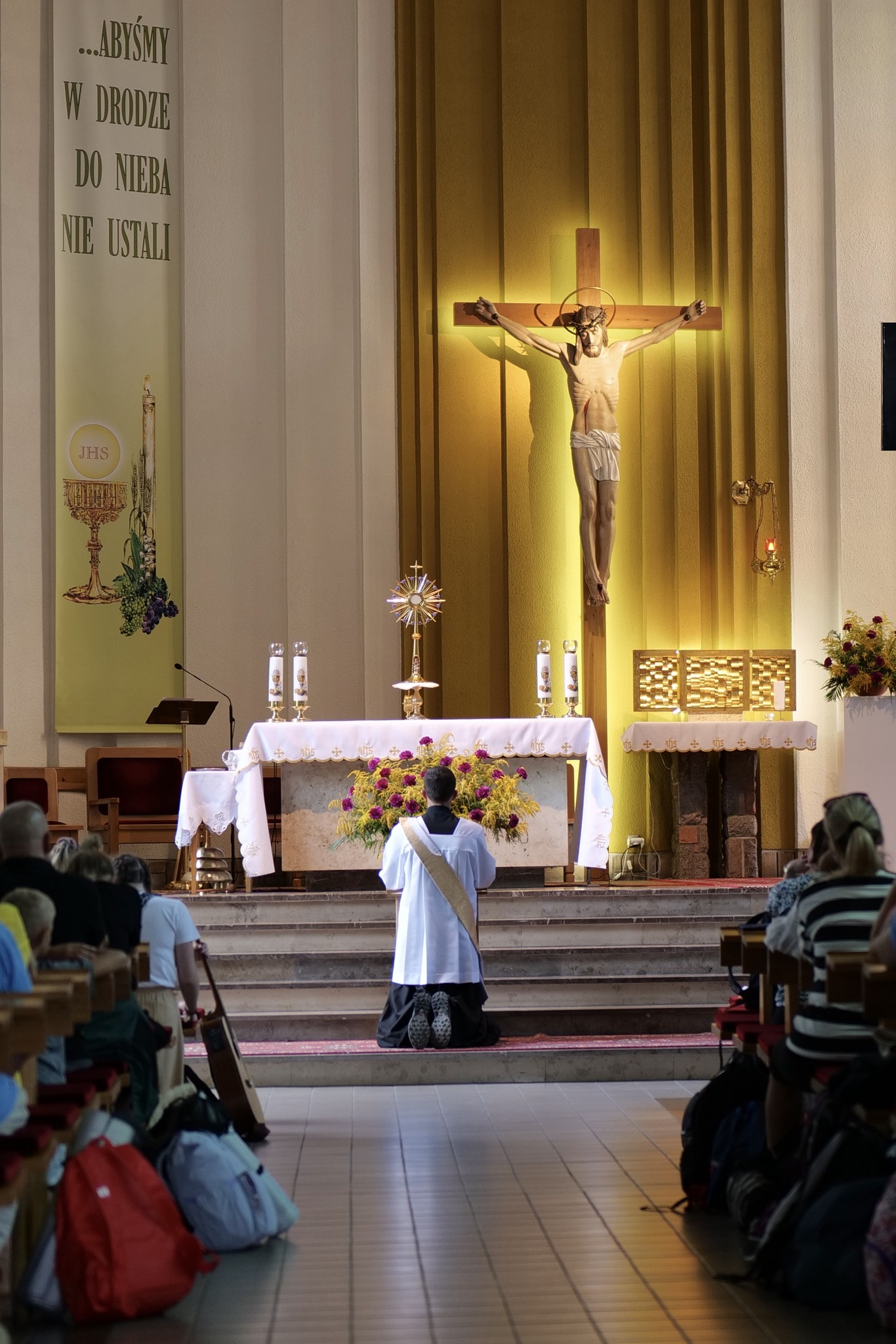 Codziennie gromadziliśmy się na Eucharystii oraz adoracji Najświętszego Sakramentu w ciszy. Nieśliśmy do naszej Matki Maryi zarówno osobiste intencje, jak i te, które zostały nam powierzone. Na naszym pątniczym szlaku spotykaliśmy wielu życzliwych ludzi, którzy nas witali i częstowali. W miejscowościach, w których nocowaliśmy, dla mieszkańców odprawiana była dziękczynna Eucharystia. W drodze modliliśmy się o powołania kapłańskie i zakonne, za ks. Michała Olszewskiego SCJ oraz we wszystkich intencjach jakie nosiliśmy w sercach.
