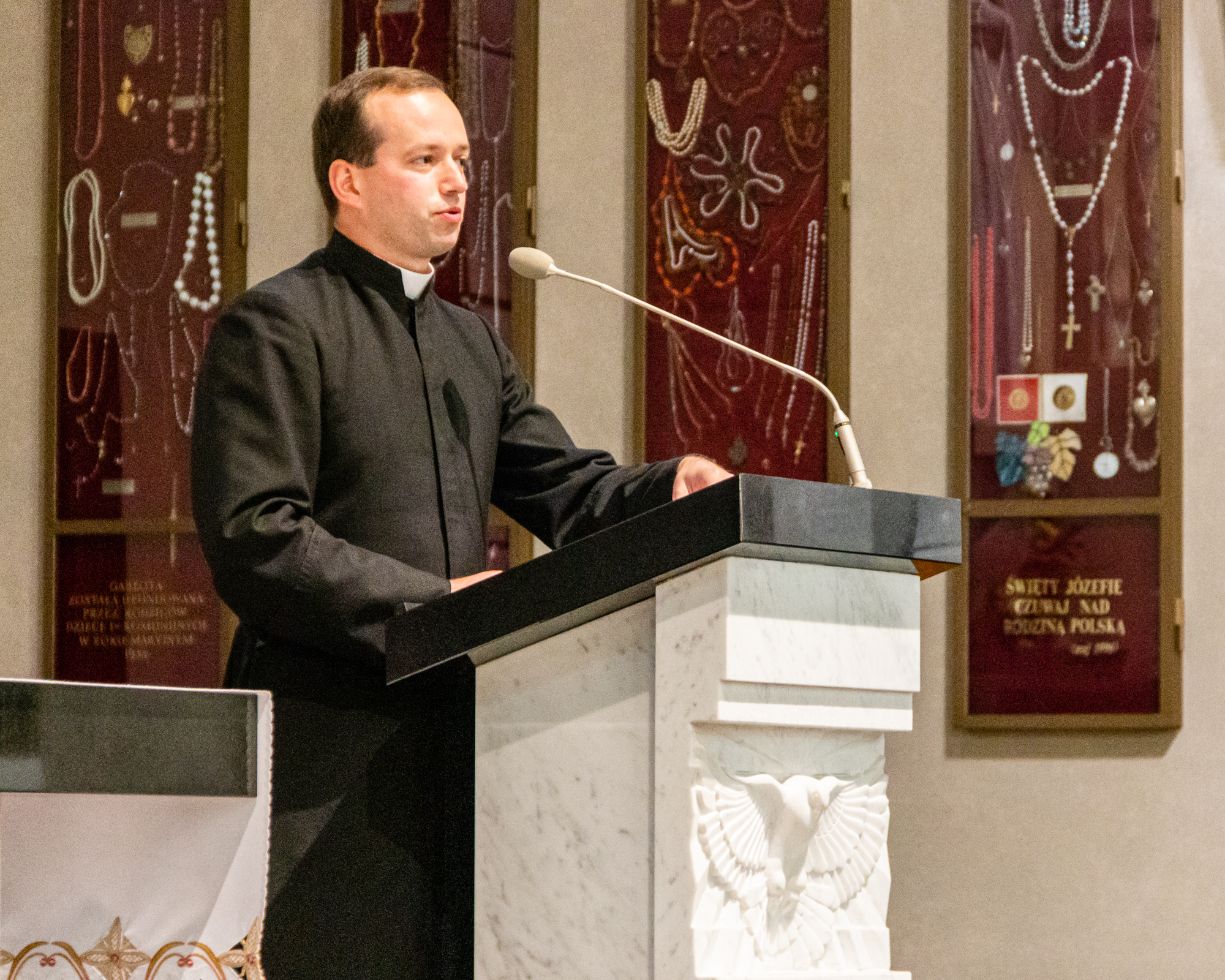 Nawiedzając łaskami słynący obraz Matki Bożej Płaszowskiej wysłuchaliśmy wygłoszonej przez ojca duchownego WSM Księży Sercanów w Stadnikach ks. mgr. lic. Franciszka Wielguta SCJ konferencji pt.: „Maryja, uczennica Pana, wzorem bycia uczniem Chrystusa”. Wprowadzeniem w istotę ww. tematu było wyjaśnienie, co w istocie na kartach Nowego Testamentu znaczy pojęcie „uczeń” (gr. mathetes). W tym kontekście autor prelekcji ukazał wyjątkowe wybranie i powołanie Maryi, które oddaje tajemnica Zwiastowania. Wnikając zaś w postawę Maryi jako uczennicy swego Syna Jezusa Chrystusa, analizie poddane zostały synonimiczne greckie czasowniki syntērein i diatērein (zachowywać) oraz symballein (rozważać, rozmyślać), które wyraźnie oddają maryjny wzór chrześcijańskiego uczniostwa.