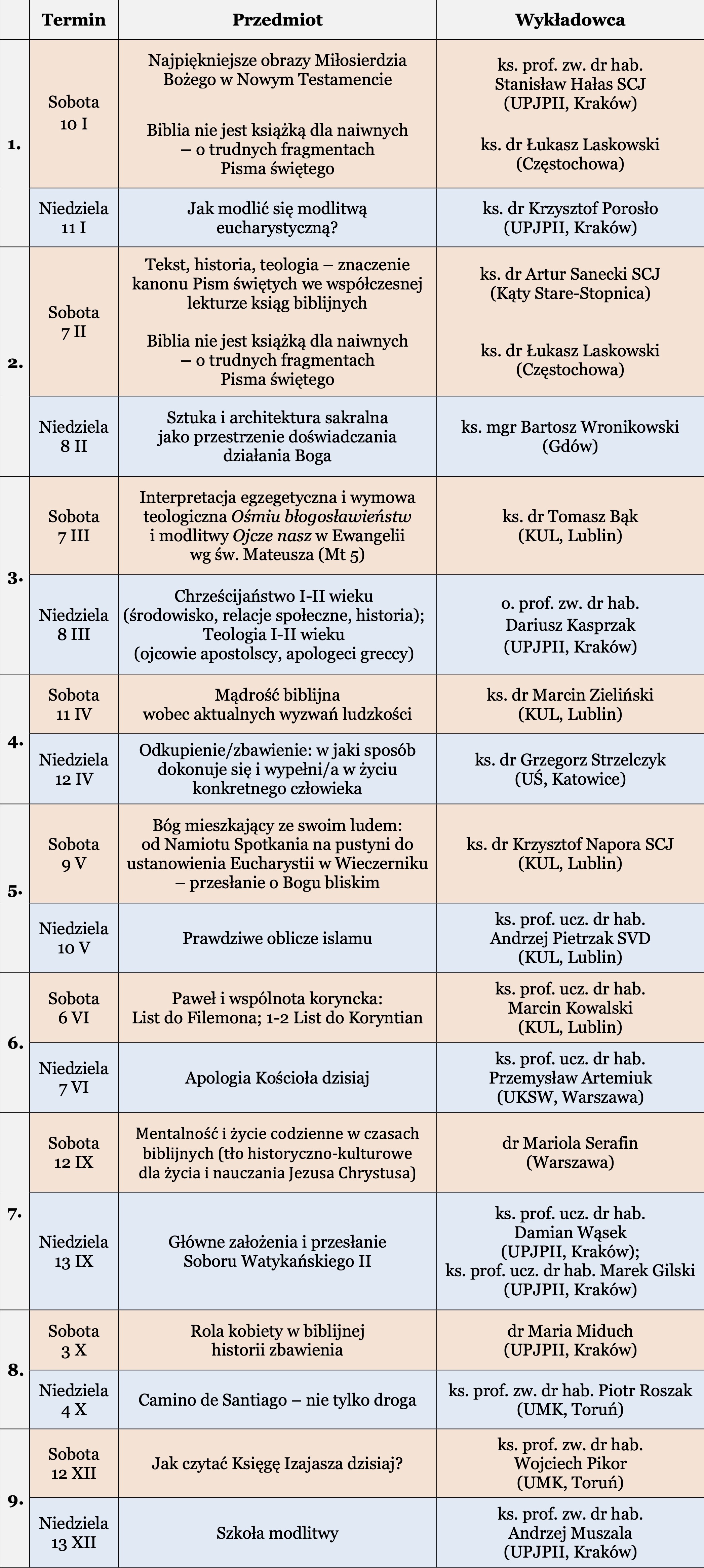 Program wykładów