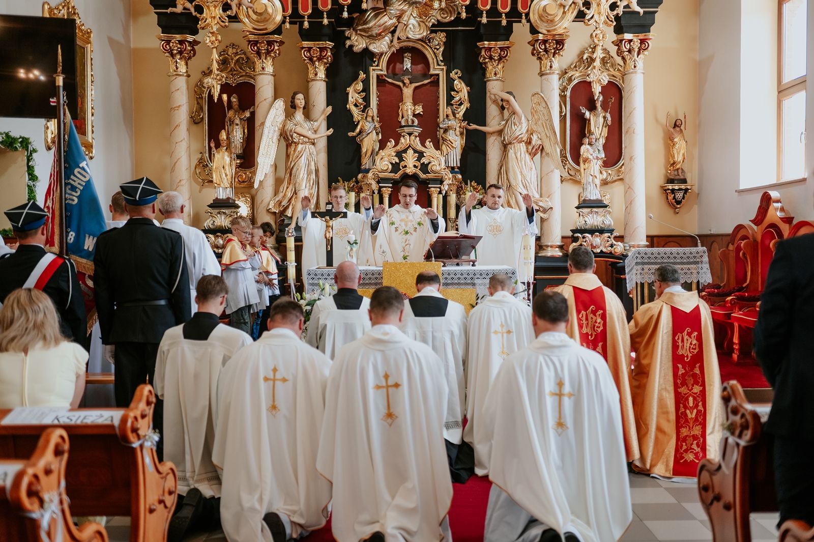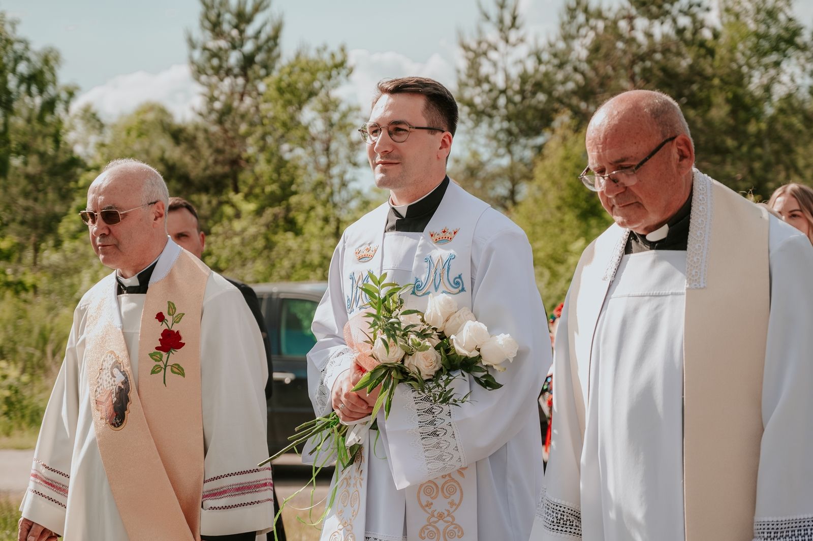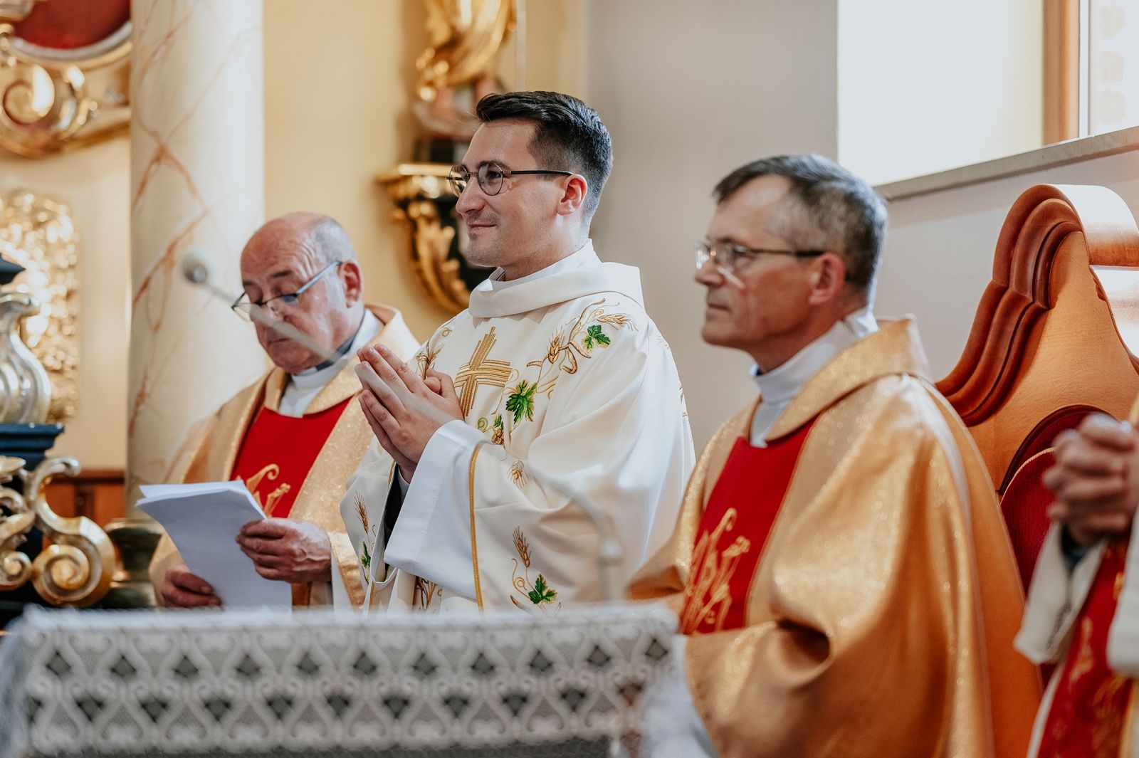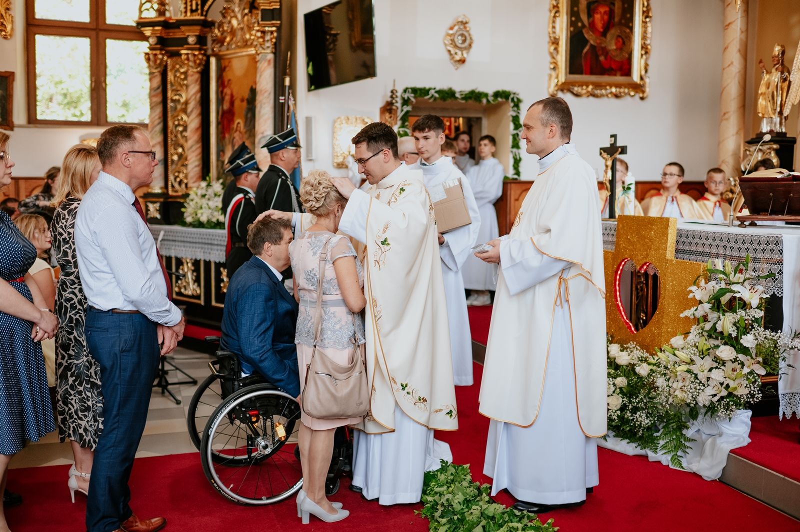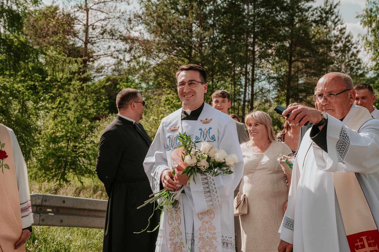 Następnego dnia, wierni zgromadzili się licznie pod domem rodzinnym prymicjanta, w którym rodzice udzielili mu swojego błogosławieństwa. Po tym, wszyscy wyruszyli w stronę kościoła, gdzie o godzinie 11:00 rozpoczęła się Eucharystia prymicyjna, której przewodniczył neoprezbiter. Licznie uczestniczyli w niej księża sercanie oraz znajomi księdzu Mateuszowi kapłani. Okolicznościową homilię wygłosił ks. Damian Płatek SCJ, wieloletni duszpasterz powołań naszej Prowincji, a dziś proboszcz parafii pw. MB Fatimskiej w Krakowie (Małym Płaszowie). Przed zakończeniem Eucharystii liczne grupy parafialne złożyły swojemu rodakowi wzruszające życzenia, zapewniając o nieustannej modlitwie w jego intencji. Po czym, głos zabrał także ks. Mateusz, wyrażając niekryte ogromem doświadczonego dobra poruszenie oraz wdzięczność za organizację tej uroczystości i obecność w jej trakcie.