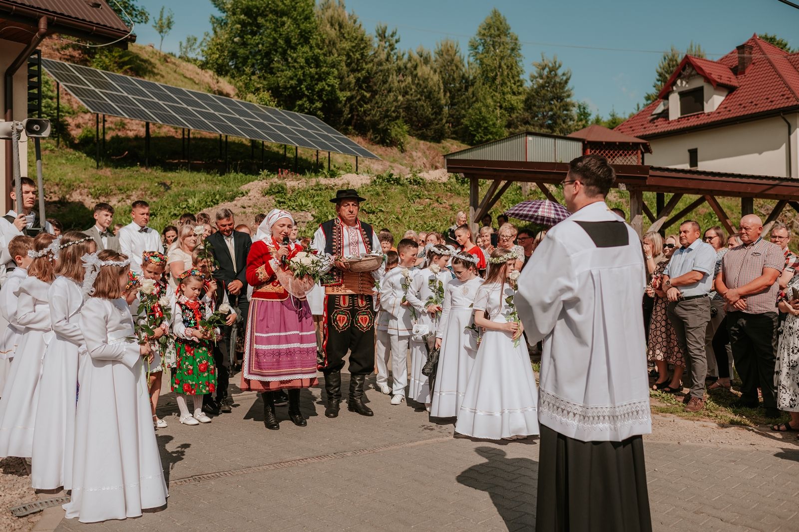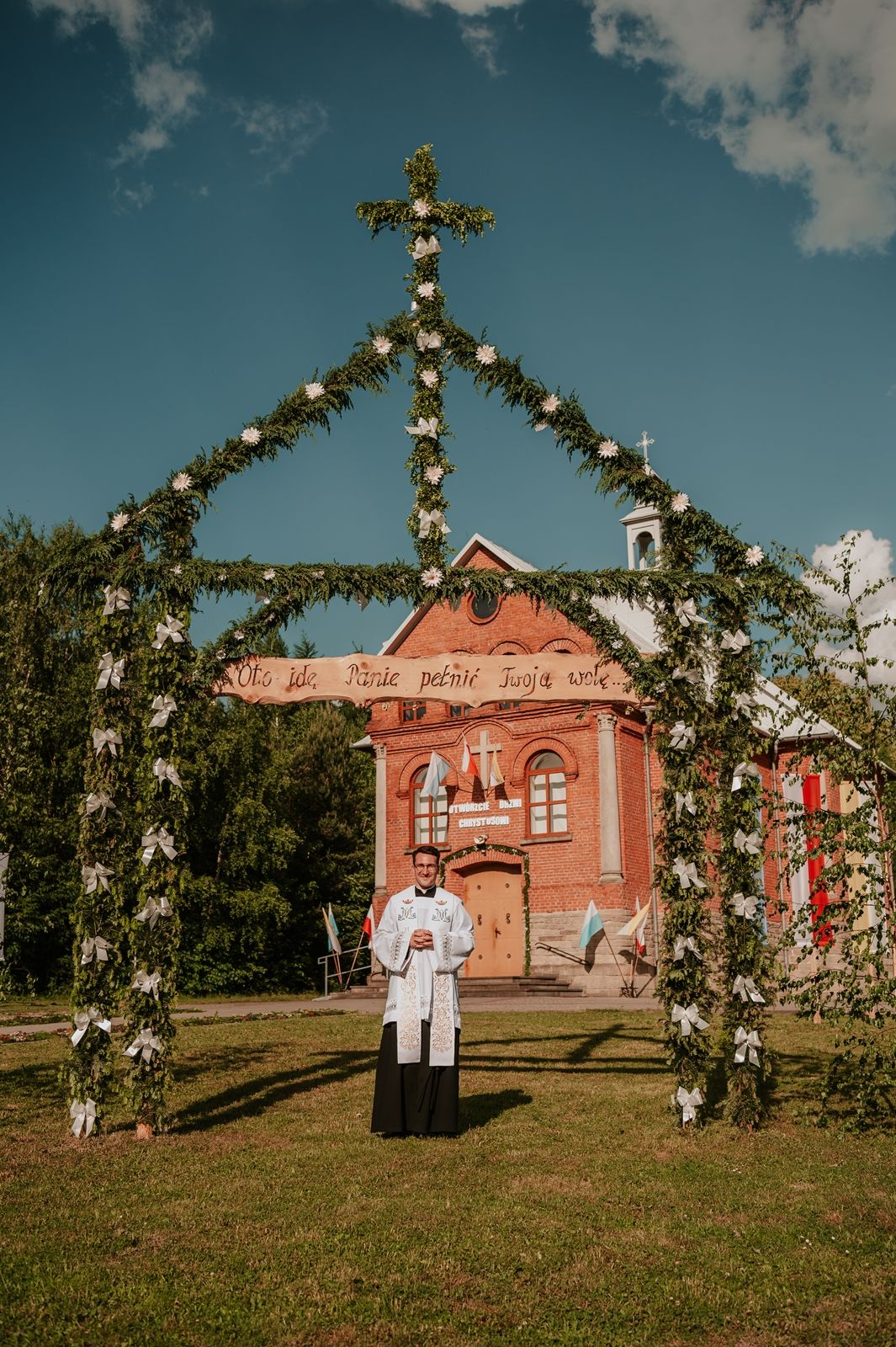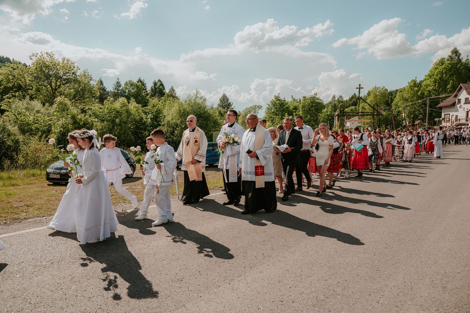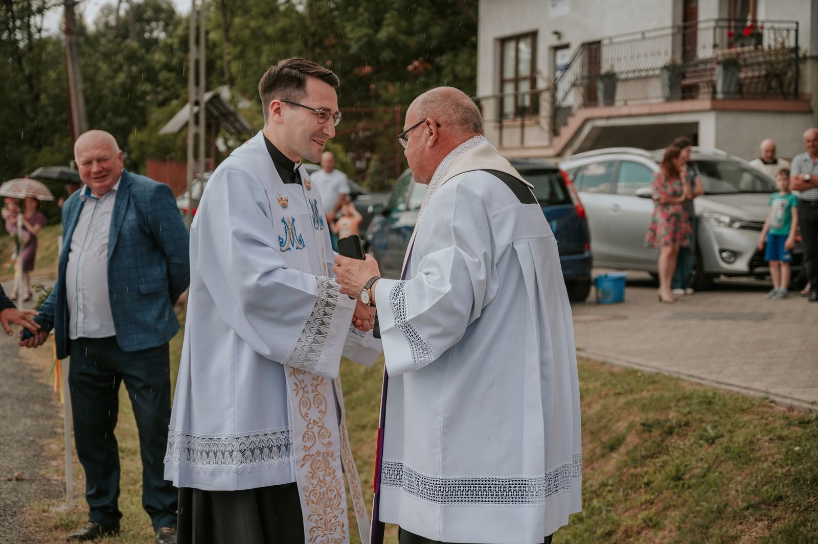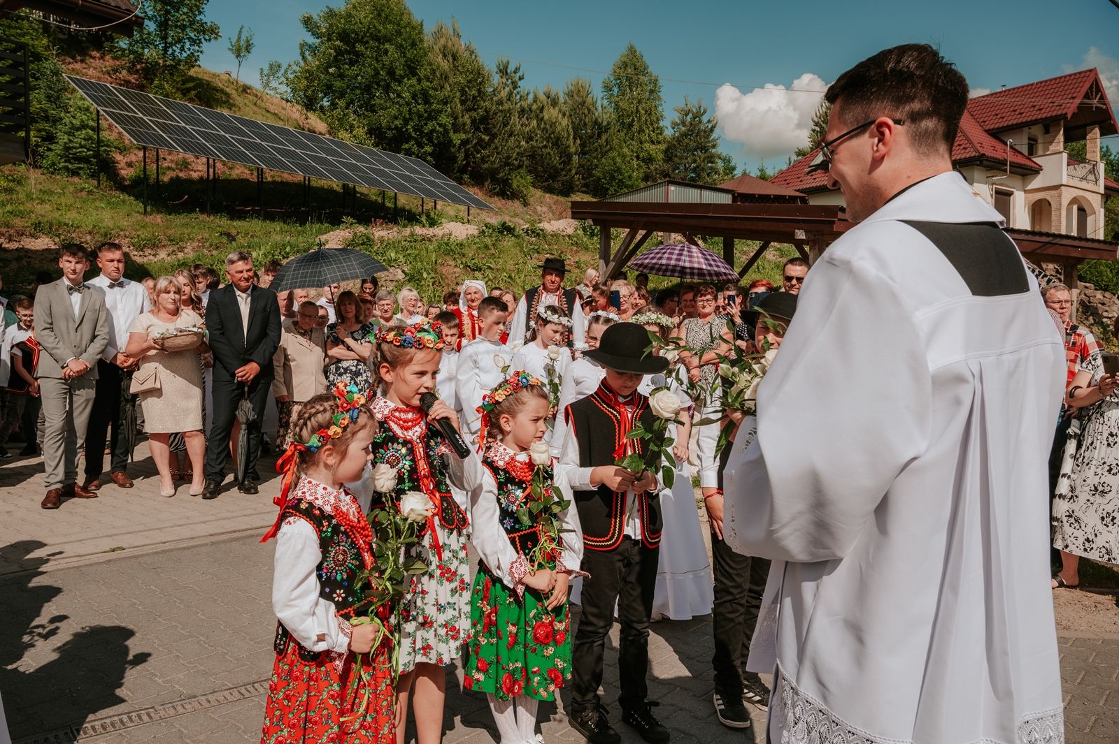 Następnego dnia, wierni zgromadzili się licznie pod domem rodzinnym prymicjanta, w którym rodzice udzielili mu swojego błogosławieństwa. Po tym, wszyscy wyruszyli w stronę kościoła, gdzie o godzinie 11:00 rozpoczęła się Eucharystia prymicyjna, której przewodniczył neoprezbiter. Licznie uczestniczyli w niej księża sercanie oraz znajomi księdzu Mateuszowi kapłani. Okolicznościową homilię wygłosił ks. Damian Płatek SCJ, wieloletni duszpasterz powołań naszej Prowincji, a dziś proboszcz parafii pw. MB Fatimskiej w Krakowie (Małym Płaszowie). Przed zakończeniem Eucharystii liczne grupy parafialne złożyły swojemu rodakowi wzruszające życzenia, zapewniając o nieustannej modlitwie w jego intencji. Po czym, głos zabrał także ks. Mateusz, wyrażając niekryte ogromem doświadczonego dobra poruszenie oraz wdzięczność za organizację tej uroczystości i obecność w jej trakcie.
