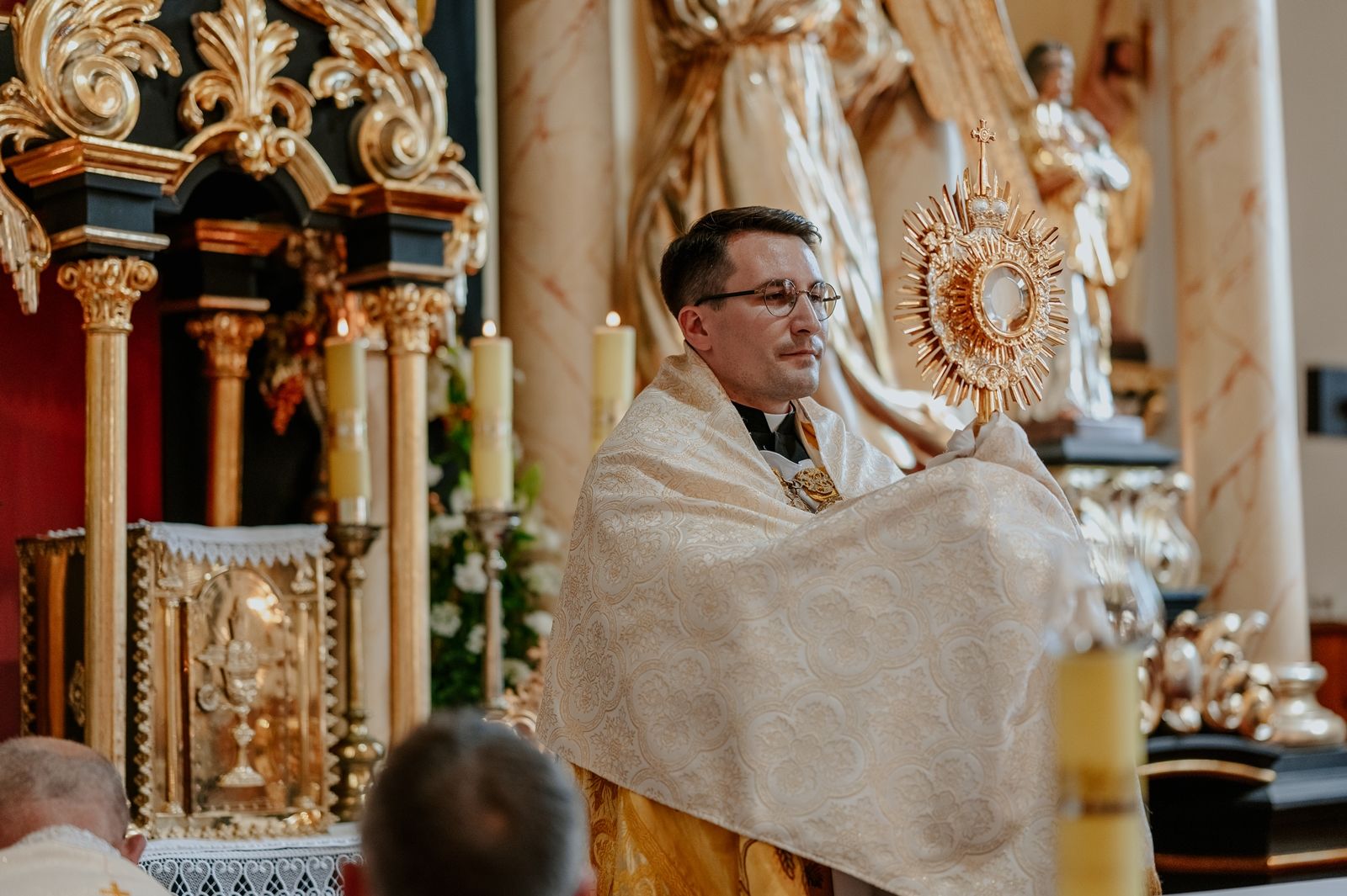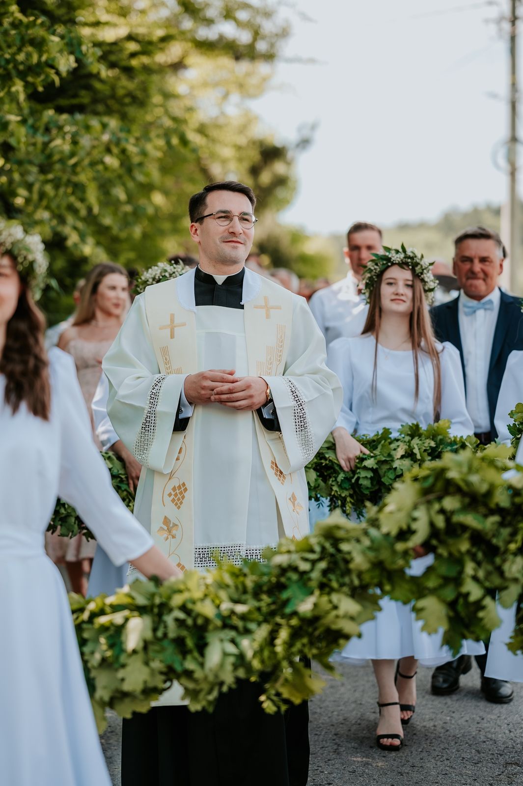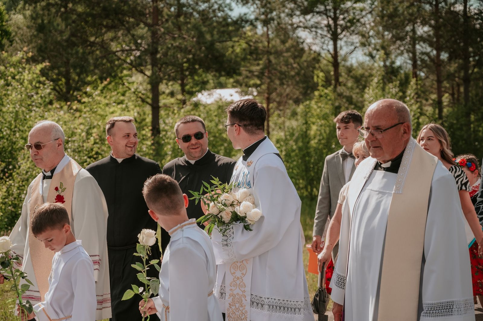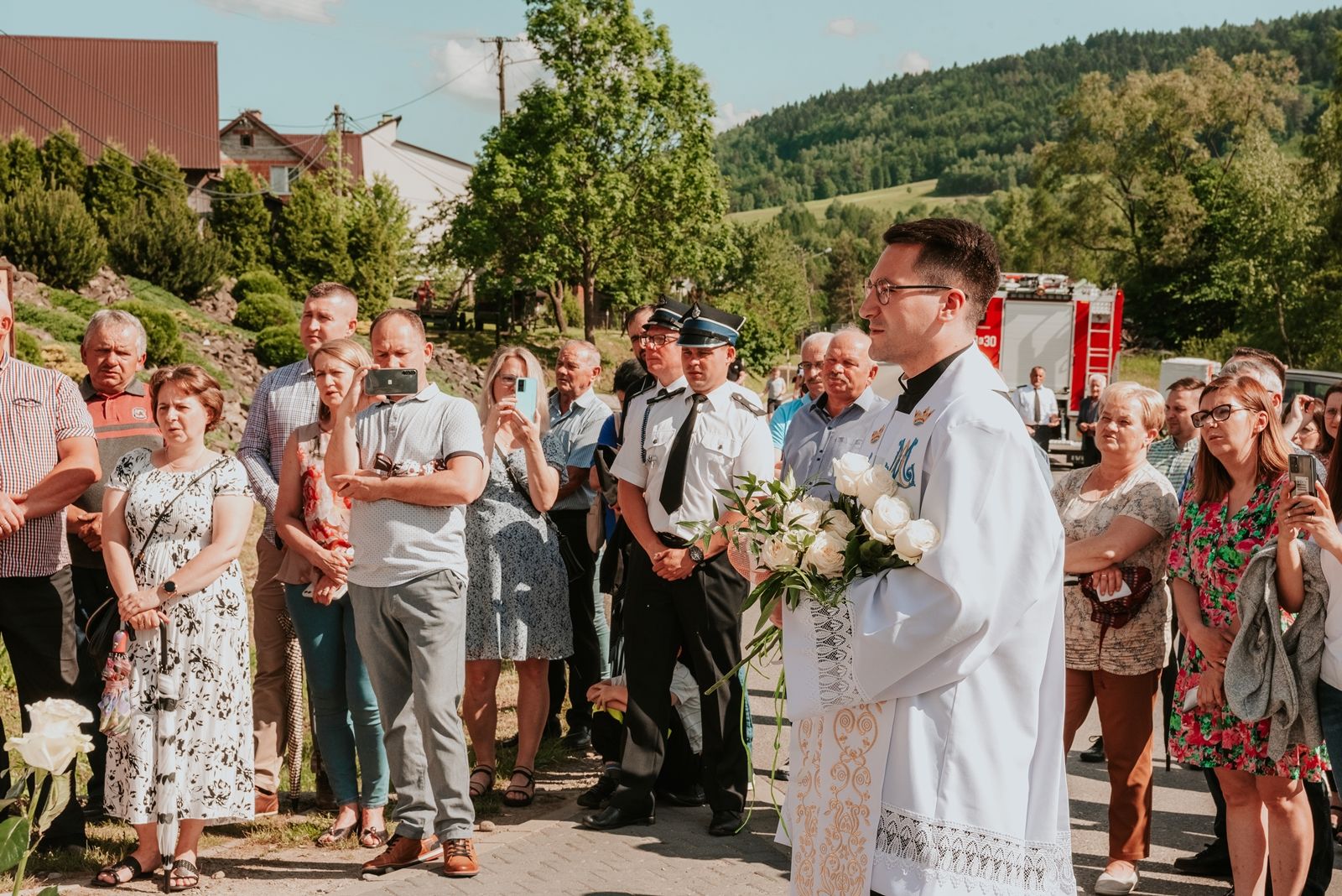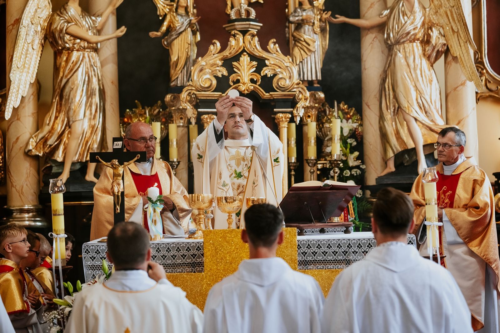 Następnego dnia, wierni zgromadzili się licznie pod domem rodzinnym prymicjanta, w którym rodzice udzielili mu swojego błogosławieństwa. Po tym, wszyscy wyruszyli w stronę kościoła, gdzie o godzinie 11:00 rozpoczęła się Eucharystia prymicyjna, której przewodniczył neoprezbiter. Licznie uczestniczyli w niej księża sercanie oraz znajomi księdzu Mateuszowi kapłani. Okolicznościową homilię wygłosił ks. Damian Płatek SCJ, wieloletni duszpasterz powołań naszej Prowincji, a dziś proboszcz parafii pw. MB Fatimskiej w Krakowie (Małym Płaszowie). Przed zakończeniem Eucharystii liczne grupy parafialne złożyły swojemu rodakowi wzruszające życzenia, zapewniając o nieustannej modlitwie w jego intencji. Po czym, głos zabrał także ks. Mateusz, wyrażając niekryte ogromem doświadczonego dobra poruszenie oraz wdzięczność za organizację tej uroczystości i obecność w jej trakcie.
