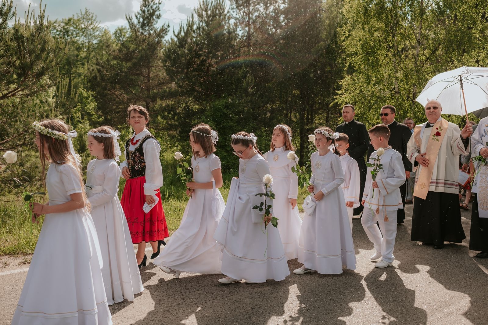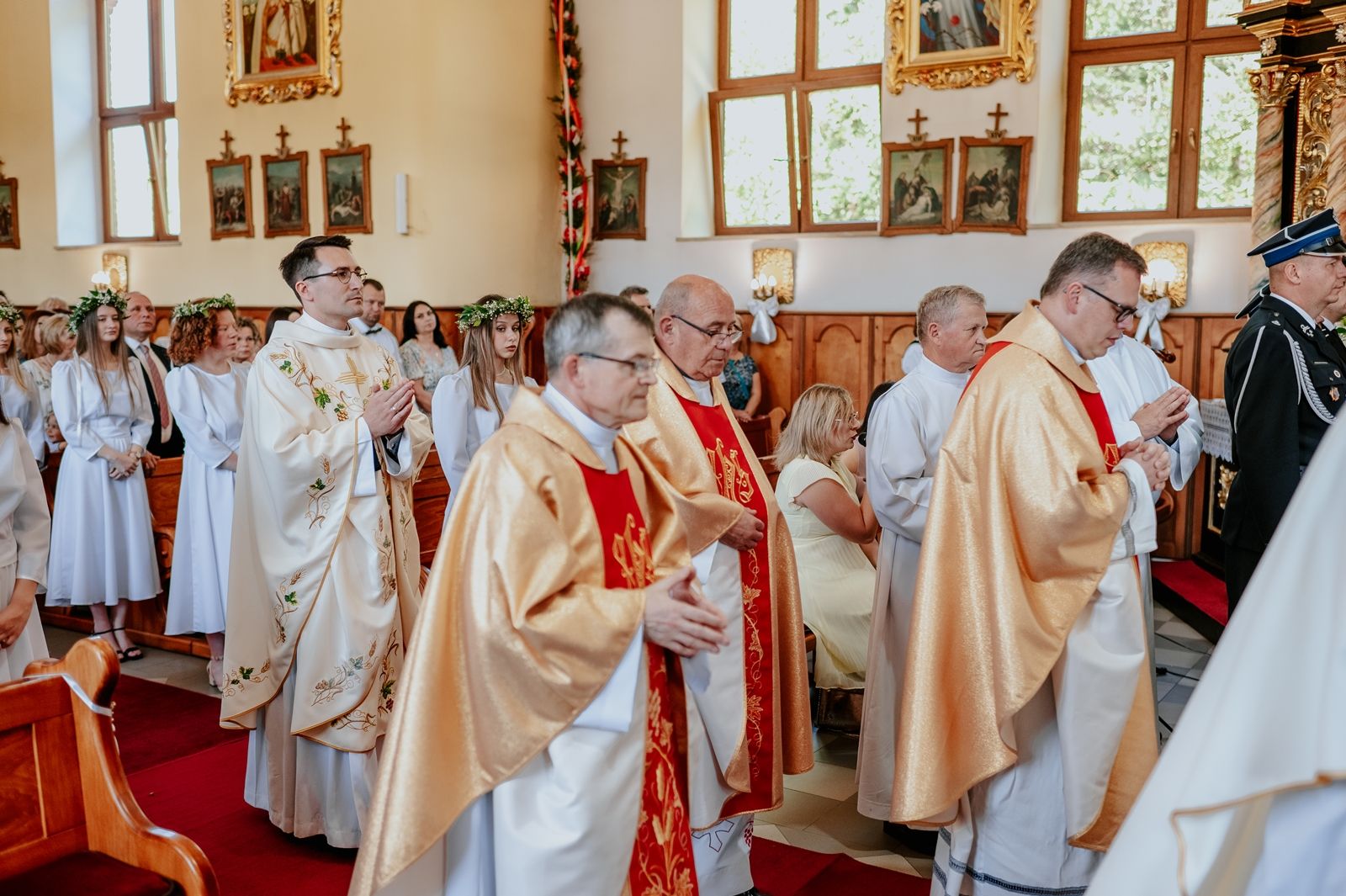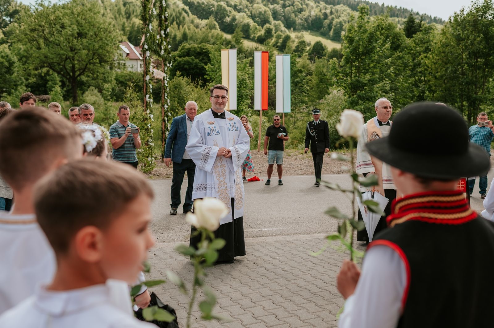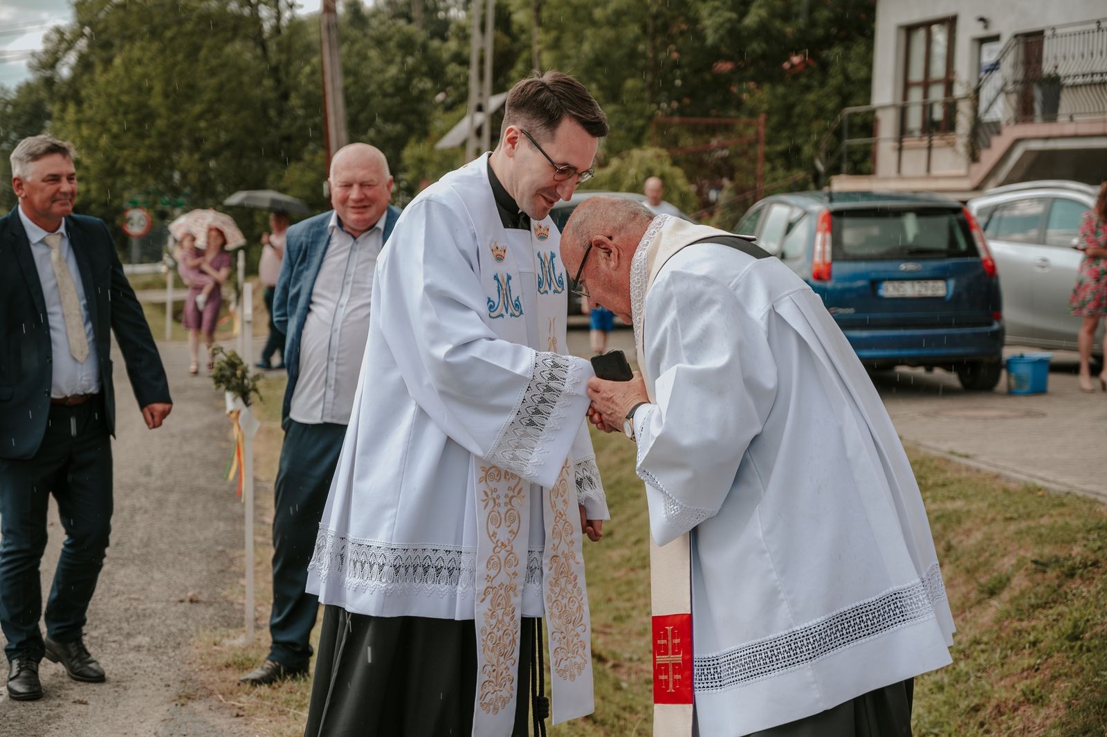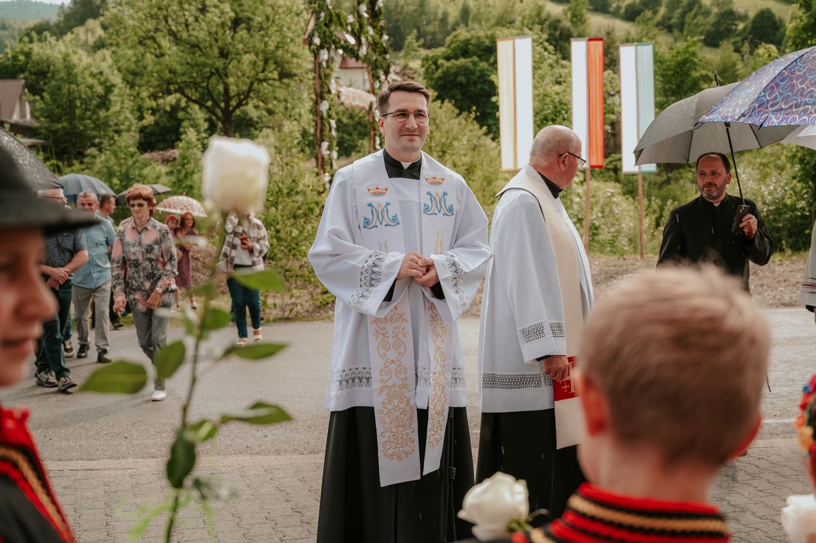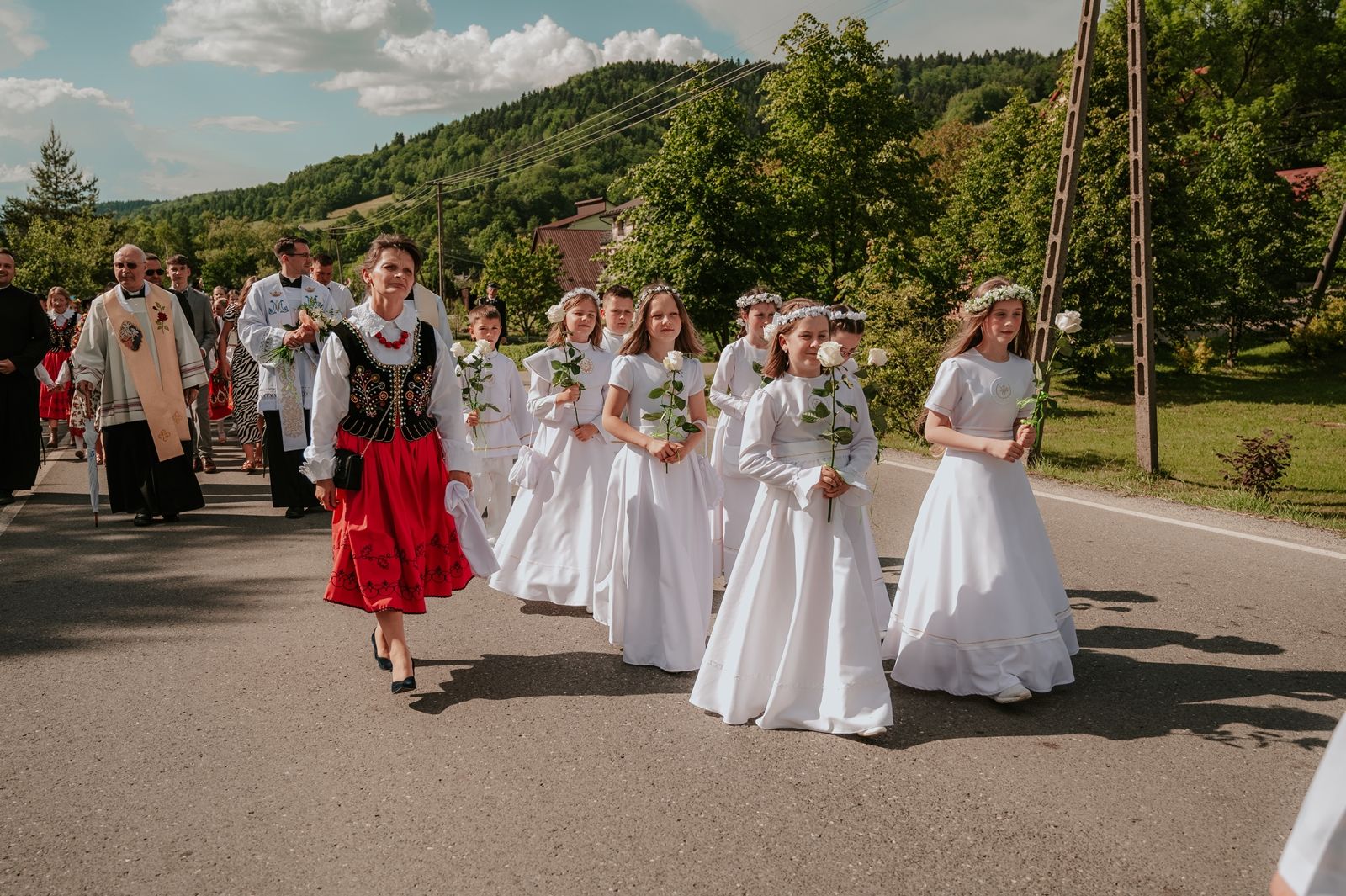 Następnego dnia, wierni zgromadzili się licznie pod domem rodzinnym prymicjanta, w którym rodzice udzielili mu swojego błogosławieństwa. Po tym, wszyscy wyruszyli w stronę kościoła, gdzie o godzinie 11:00 rozpoczęła się Eucharystia prymicyjna, której przewodniczył neoprezbiter. Licznie uczestniczyli w niej księża sercanie oraz znajomi księdzu Mateuszowi kapłani. Okolicznościową homilię wygłosił ks. Damian Płatek SCJ, wieloletni duszpasterz powołań naszej Prowincji, a dziś proboszcz parafii pw. MB Fatimskiej w Krakowie (Małym Płaszowie). Przed zakończeniem Eucharystii liczne grupy parafialne złożyły swojemu rodakowi wzruszające życzenia, zapewniając o nieustannej modlitwie w jego intencji. Po czym, głos zabrał także ks. Mateusz, wyrażając niekryte ogromem doświadczonego dobra poruszenie oraz wdzięczność za organizację tej uroczystości i obecność w jej trakcie.