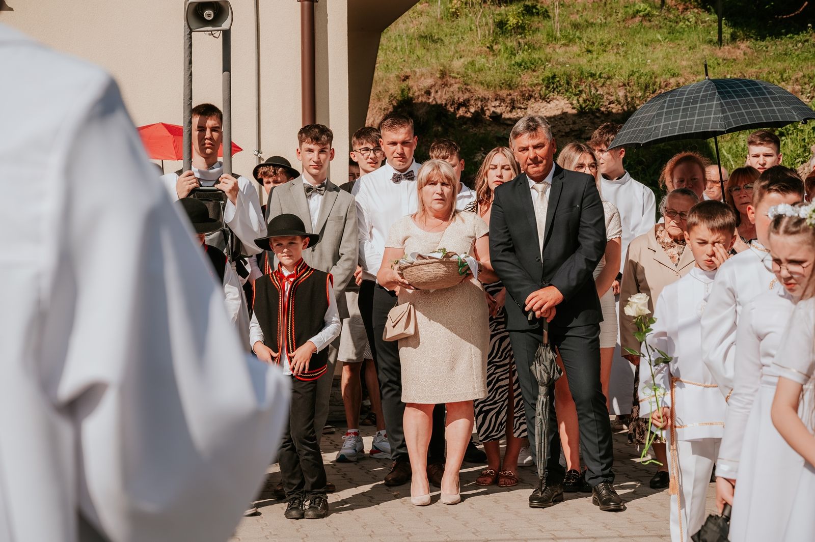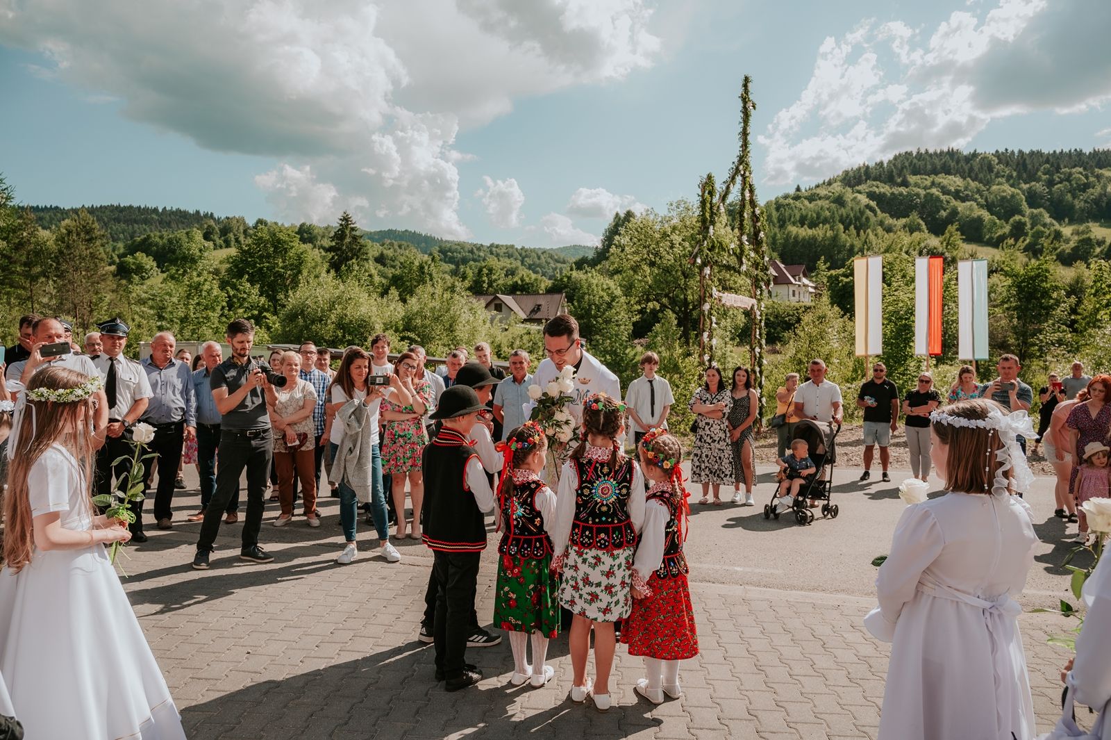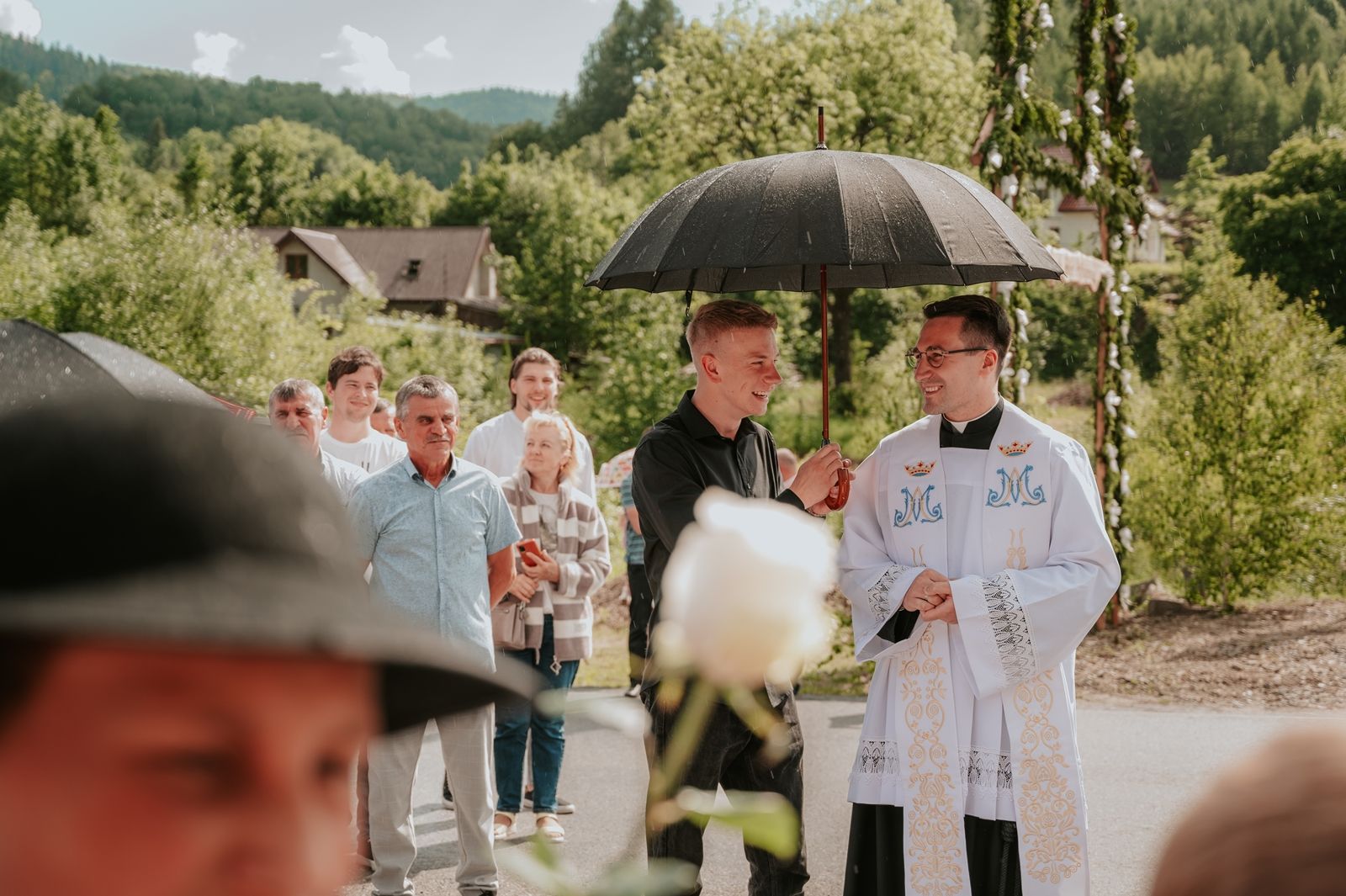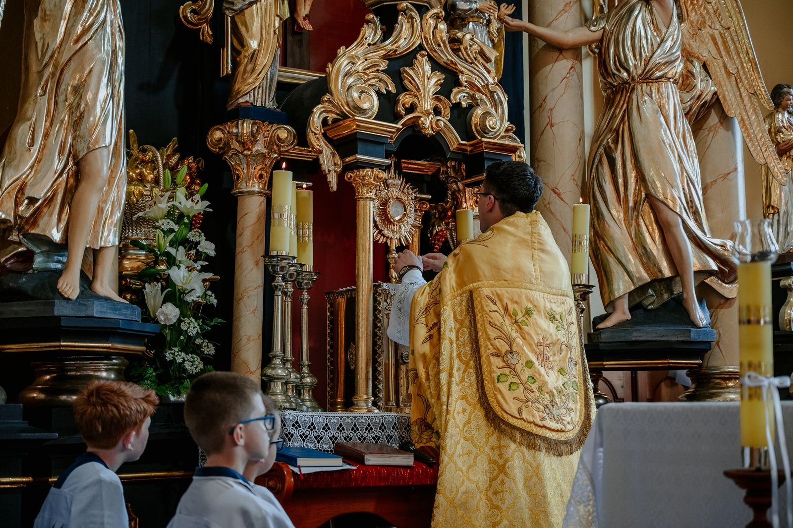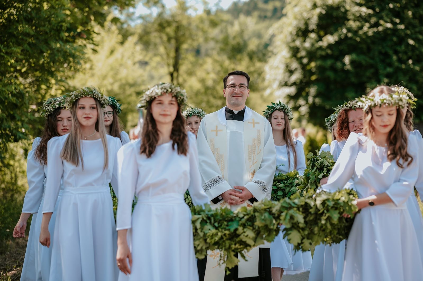 Następnego dnia, wierni zgromadzili się licznie pod domem rodzinnym prymicjanta, w którym rodzice udzielili mu swojego błogosławieństwa. Po tym, wszyscy wyruszyli w stronę kościoła, gdzie o godzinie 11:00 rozpoczęła się Eucharystia prymicyjna, której przewodniczył neoprezbiter. Licznie uczestniczyli w niej księża sercanie oraz znajomi księdzu Mateuszowi kapłani. Okolicznościową homilię wygłosił ks. Damian Płatek SCJ, wieloletni duszpasterz powołań naszej Prowincji, a dziś proboszcz parafii pw. MB Fatimskiej w Krakowie (Małym Płaszowie). Przed zakończeniem Eucharystii liczne grupy parafialne złożyły swojemu rodakowi wzruszające życzenia, zapewniając o nieustannej modlitwie w jego intencji. Po czym, głos zabrał także ks. Mateusz, wyrażając niekryte ogromem doświadczonego dobra poruszenie oraz wdzięczność za organizację tej uroczystości i obecność w jej trakcie.
