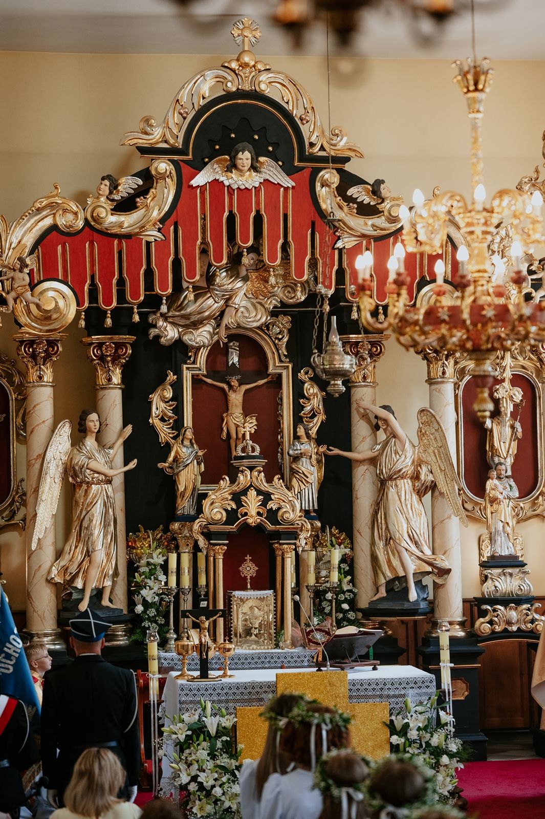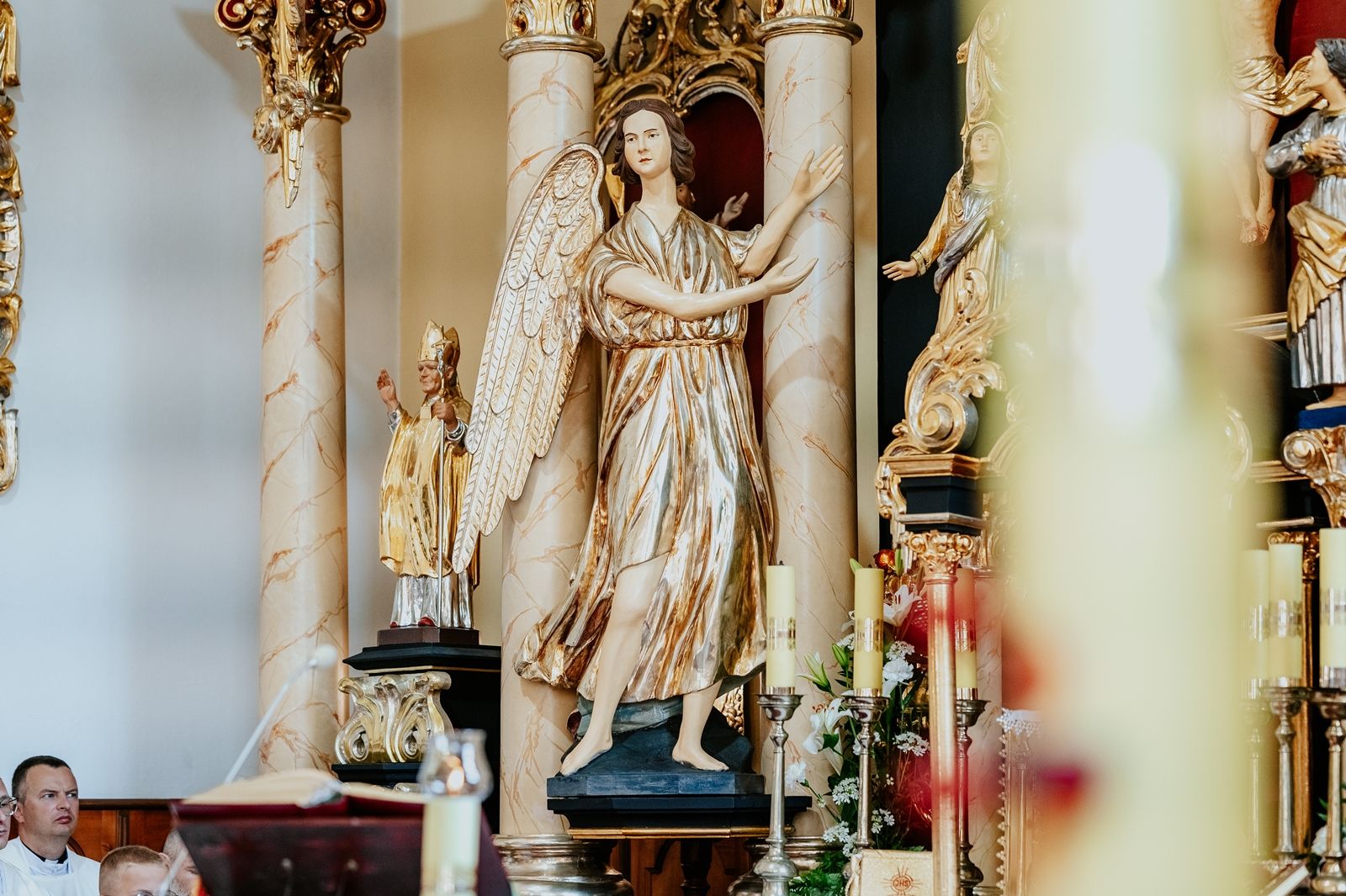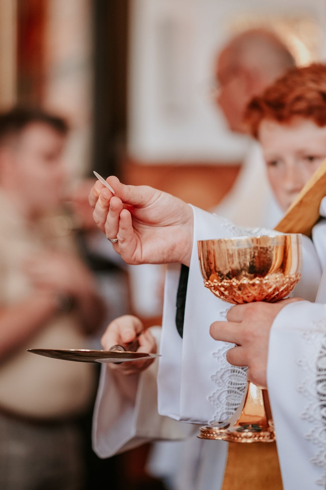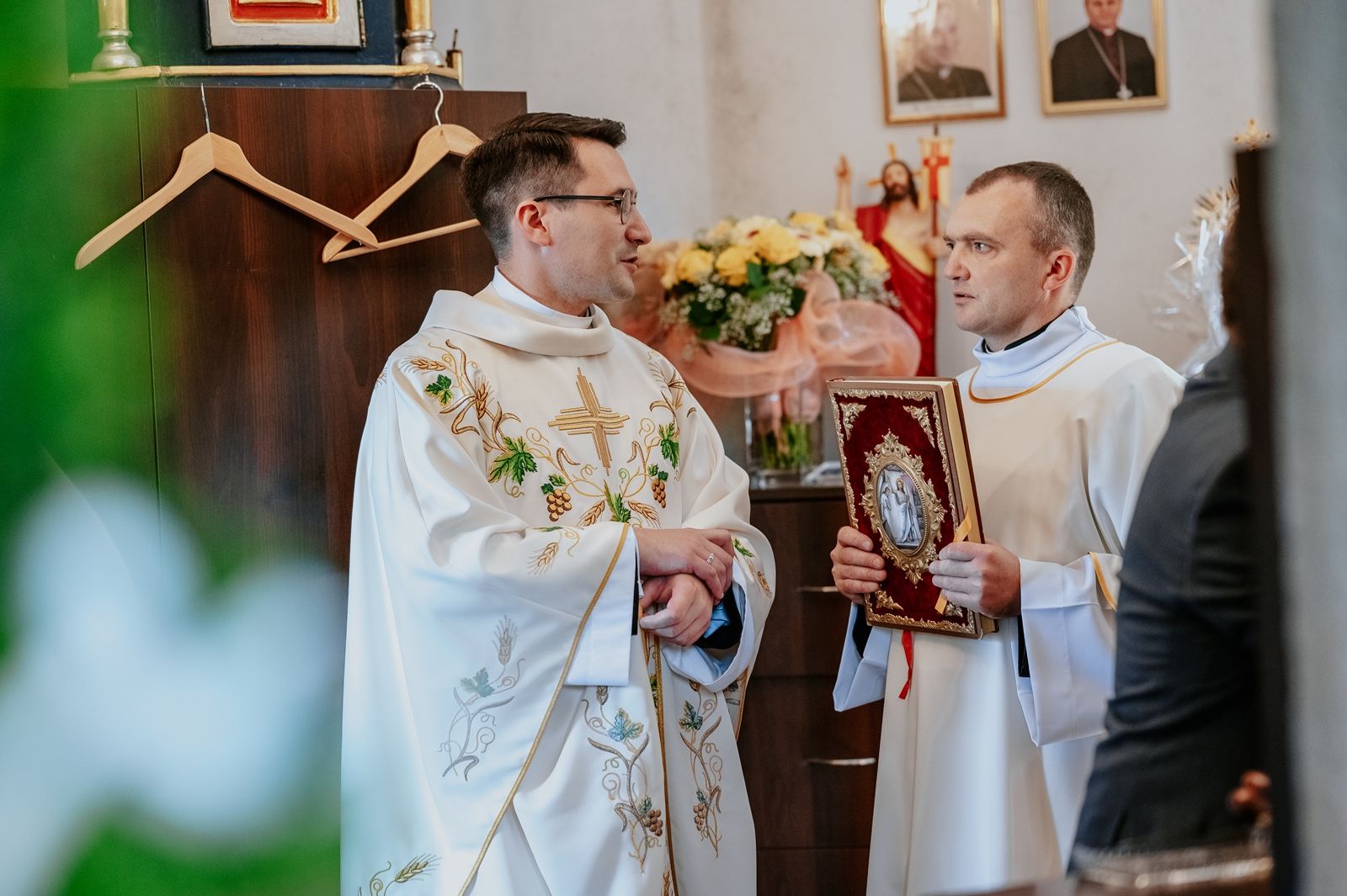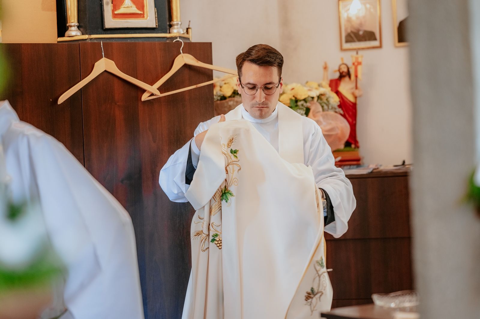 Następnego dnia, wierni zgromadzili się licznie pod domem rodzinnym prymicjanta, w którym rodzice udzielili mu swojego błogosławieństwa. Po tym, wszyscy wyruszyli w stronę kościoła, gdzie o godzinie 11:00 rozpoczęła się Eucharystia prymicyjna, której przewodniczył neoprezbiter. Licznie uczestniczyli w niej księża sercanie oraz znajomi księdzu Mateuszowi kapłani. Okolicznościową homilię wygłosił ks. Damian Płatek SCJ, wieloletni duszpasterz powołań naszej Prowincji, a dziś proboszcz parafii pw. MB Fatimskiej w Krakowie (Małym Płaszowie). Przed zakończeniem Eucharystii liczne grupy parafialne złożyły swojemu rodakowi wzruszające życzenia, zapewniając o nieustannej modlitwie w jego intencji. Po czym, głos zabrał także ks. Mateusz, wyrażając niekryte ogromem doświadczonego dobra poruszenie oraz wdzięczność za organizację tej uroczystości i obecność w jej trakcie.