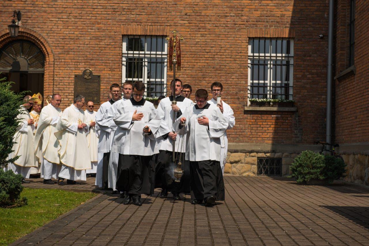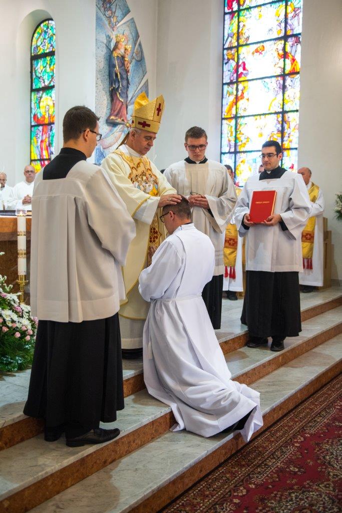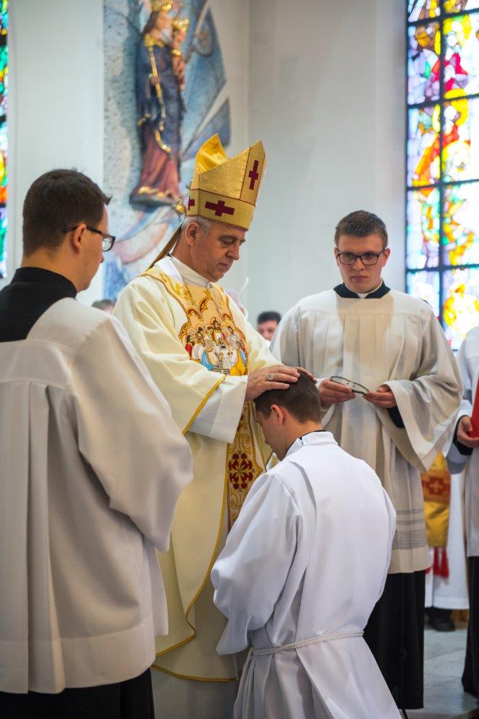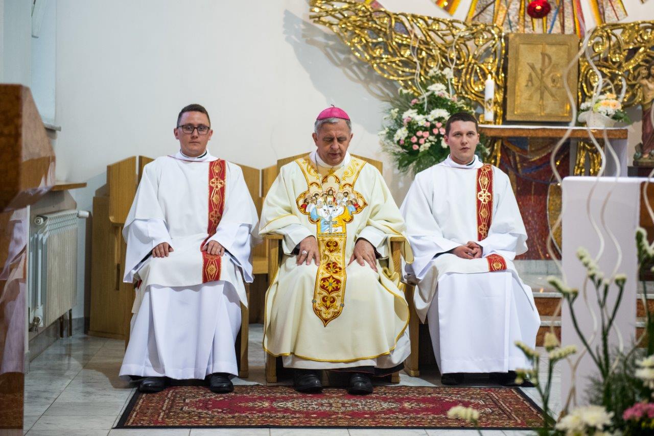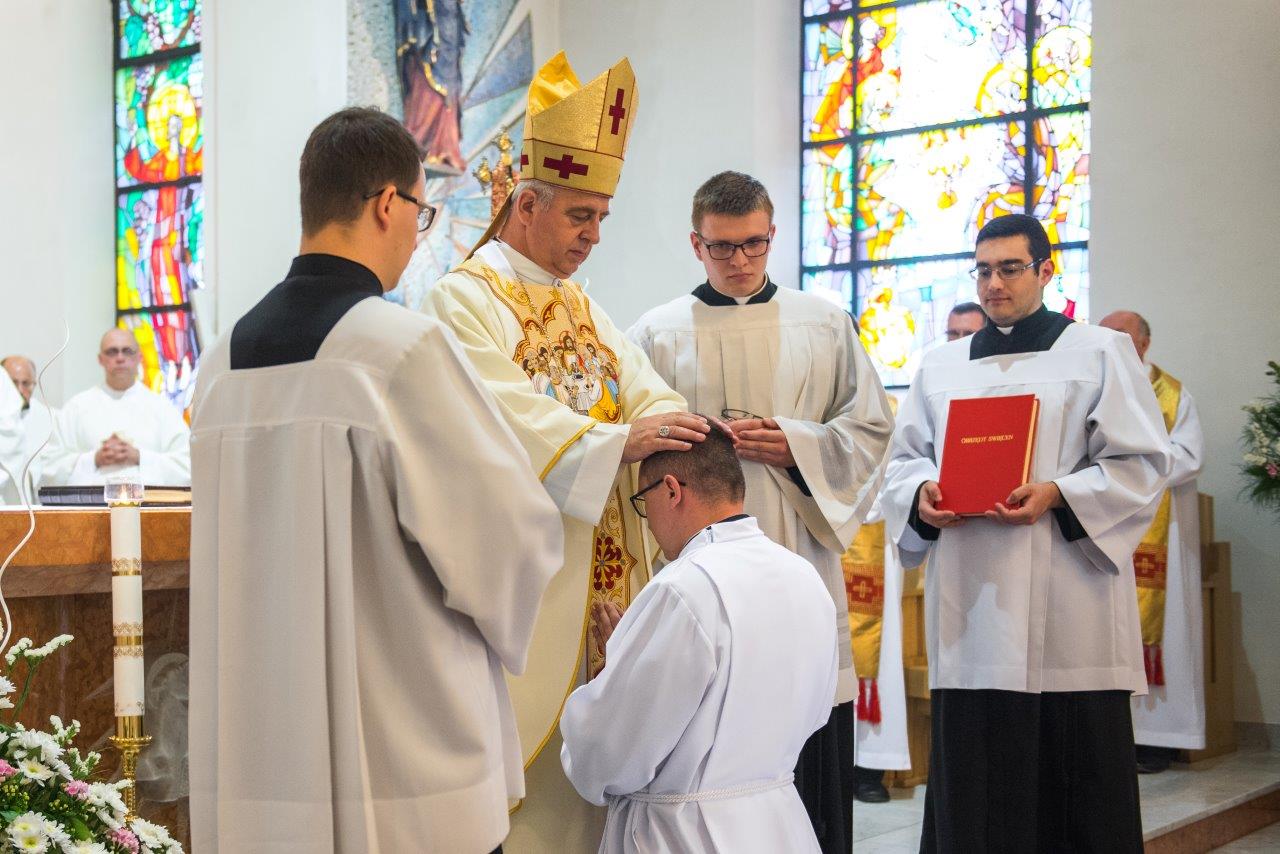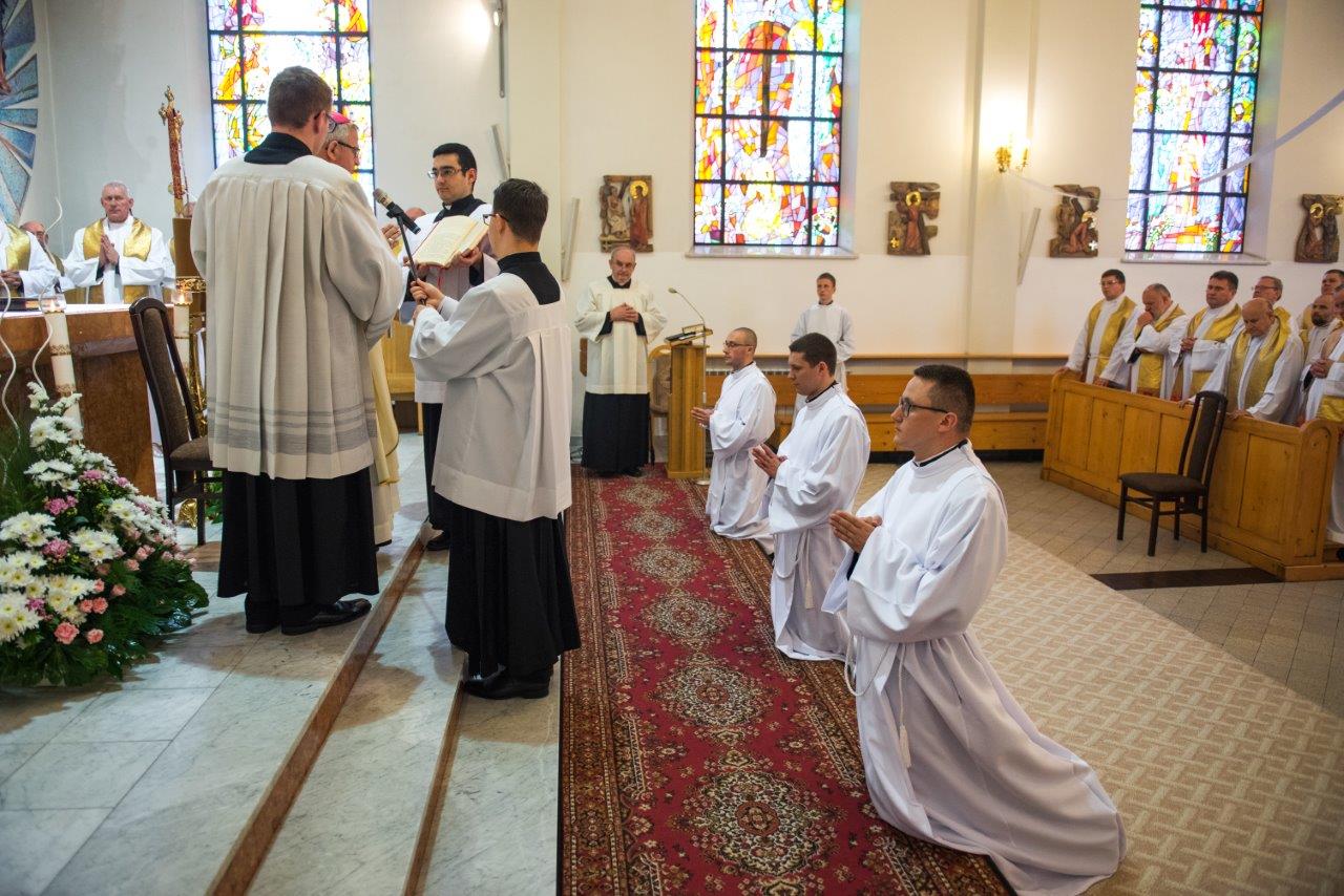Po raz pierwszy od dwóch lat w stadnickiej świątyni wybrzmiały powyższe słowa modlitwy konsekracyjnej. W sobotę 20 maja 2017 r. o godz. 11.oo, ku radości całej polskiej prowincji Zgromadzenia Księży Sercanów, rozpoczęła się uroczysta Msza święta, podczas której trzech alumnów naszego seminarium przyjęło sakrament święceń diakonatu. W uroczystości udział wzięli współbracia z Polski i zagranicy, nowicjusze i postulanci oraz rodzina i przyjaciele przyszłych diakonów. Klerycy V roku Wyższego Seminarium Misyjnego Księży Sercanów w Stadnikach: Jakub Gąsienica-Jacków i Mateusz Tomczykowski z Polski oraz Aliaksiej Ventskevich z Białorusi przyjęli sakrament święceń przez włożenie rąk bpa Jana Piotrowskiego, ordynariusza diecezji kieleckiej.