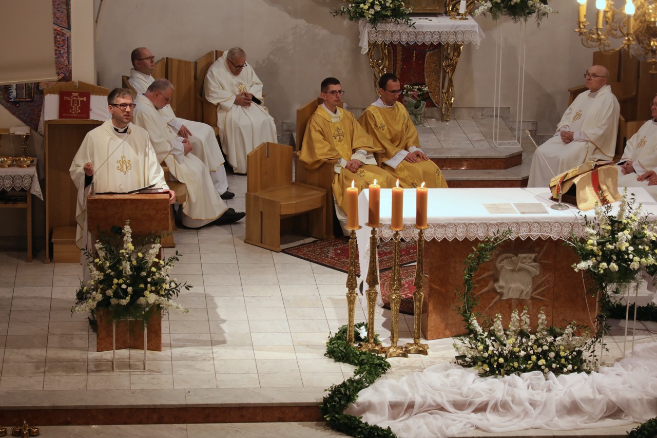 Okolicznościową homilię wygłosił ks. Adam Pastorczyk SCJ, który przypomniał prymicjantowi słowa Chrystusa z kazania na górze, szczególnie te o modlitwie we własnej izdebce (gr. tamejonie), którą przez ostatnie 6 lat była dla ks. Jacka seminaryjna kaplica. „To nie żarty, lecz lekcja twojej wiary i modlitwy, tej zanoszonej w porannym niewyspaniu i nieprzeniknionej ciemności... Zanoszonej wtedy, gdy na wszystkie okna zasunięto już bezpieczne rolety, zgaszono światło i położono się do łóżek... Zapalonej w Twoim tamejonie, w twojej izdebce, nie jako ogrzewający Cię płomień, lecz jako dowód wierności...”.